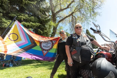 The Salt Lake chapter is only in its second year of formal existence, but it has grown rapidly. The chapter plans to host sisters from around the world in 2026 for a cross-country ride, coinciding with the organization’s 50th anniversary. “We felt like there needed to be a unifying, adult, sapphic voice in Salt Lake,” Jeri says. “We’re about pushing the idea that there should be equality for everyone. That everyone should be respected and treated well, and we’re just not going to allow folks to hurt people in our presence.”
