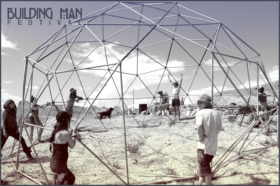 This is year eight of the Building Man event. It started as a simple group of friends and those who had worked with Scotty on the Solar Saucer. They were doing campouts down at the JenkStar Ranch property in Green River, and they decided to organize more and invite a larger group of people to the event. In the early years, the festival was called Spring Fling. At this time, there were a few live stage acts, DJs and themed workshops. It was less structured and more similar to the Melon Nights event that JenkStars hold in the fall. Once it evolved into a full-on sustainable living, arts and music festival, they changed the name to Building Man: an event dedicated to educating the people on alternative energy, art, music recycling and preserving our planet; an event designed to enlighten people to become more innovative in the way we use our resources; a festival run completely on solar energy.