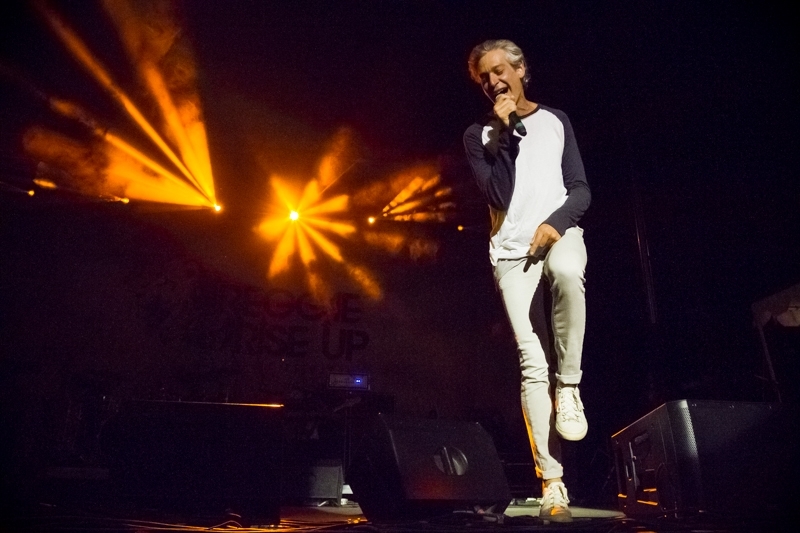 San Diego’s Stranger came out with a strong stage presence and got the audience dancing early with their versatile and enthusiastic performance (the trombone player was especially pumped). Once again the horn/sax combo came out and added a chipper expression to my eventually sunburned face; lead singer David Omelas even whistled for a few songs, which was a first for the festival.
