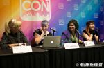 The ladies were delighted at the turnout for their panel and began by rehashing how the last two days of con had been for them. I learned O’Haodagain is actually an employee of Comic Con when she received (and proceeded to answer, to great hilarity) a phone call mid-panel from “work.” Starr and Uber Alles talked about the fantastic experience they had working on the panel for the Bechdel Test in Film and TV (“Best moderator ever!”). Afterwards they turned over to audience Q&A, and went down the line to answer their fans about their favorite fandoms, the cosplay they’re most proud of doing and the best cosplay they’ve seen at the Con, and what nerdy item they couldn’t live without on a desert island. The questions were a little softball, but it was a charming show of devotion for these ladies and their work, and not unlike the types of questions other celebrities were receiving in their own panels.