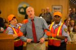 The notion of instantly becoming a celebrity in America runs rampant, and reality programming and viral videos aren’t helping the situation. In the small town of Liberty, New York, Katelyn Stuben (Meredith Hagner) constantly envisions the interview she’ll have on “The Ellen DeGeneres Show” after she wins the next season of “The Voice.” While she dreams of stardom alone in her car, her father, Dave (Matt Walsh), spends his time verbally assaulting Liberty’s city council about the condition of their town to the point of arrest. Don’t even get him started on the potholes. Dave’s outlandish behavior is caught on video and Think Tank, an advocacy group in New York City, decides to support the crusade. While Katelyn spins her wheels on unobtainable aspirations, Dave soon becomes the face of a movement. Veteran comedian David Cross writes and directs his first feature film with a similar style to “Mr. Show with Bob and David” as he loosely connects a variety of characters in different segments to each other. Knowing the no holds barred approach to comedy Cross commonly utilizes in his stand-up career, one would hope he’d bring it to the big screen, but such is not the case. The majority of the film spins its wheels looking for traction on set-ups that never come to fruition. Cross’ representation of New York City hipsters is spot-on with the use of Zipcars, an ironic fondness for patriotic shirts and non-prescription glasses. The majority of solid gags come from hipster trio James Adomian, Derek Waters and Wyatt Cenac as well as David Koechner as the local bigot who hates everything they stand for. All four of them in a diner together is priceless. Cross’ directorial debut treads water for far too much time, but ends with a hilariously raunchy grand finale that represents the grotesque class of comedy we had been hoping would arrive 90 minutes earlier.