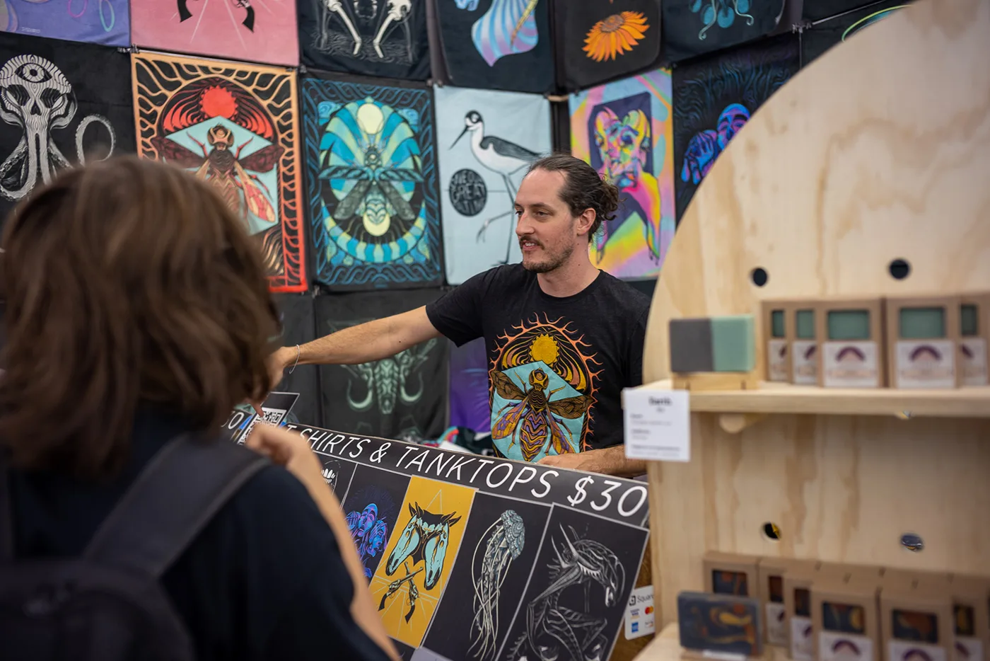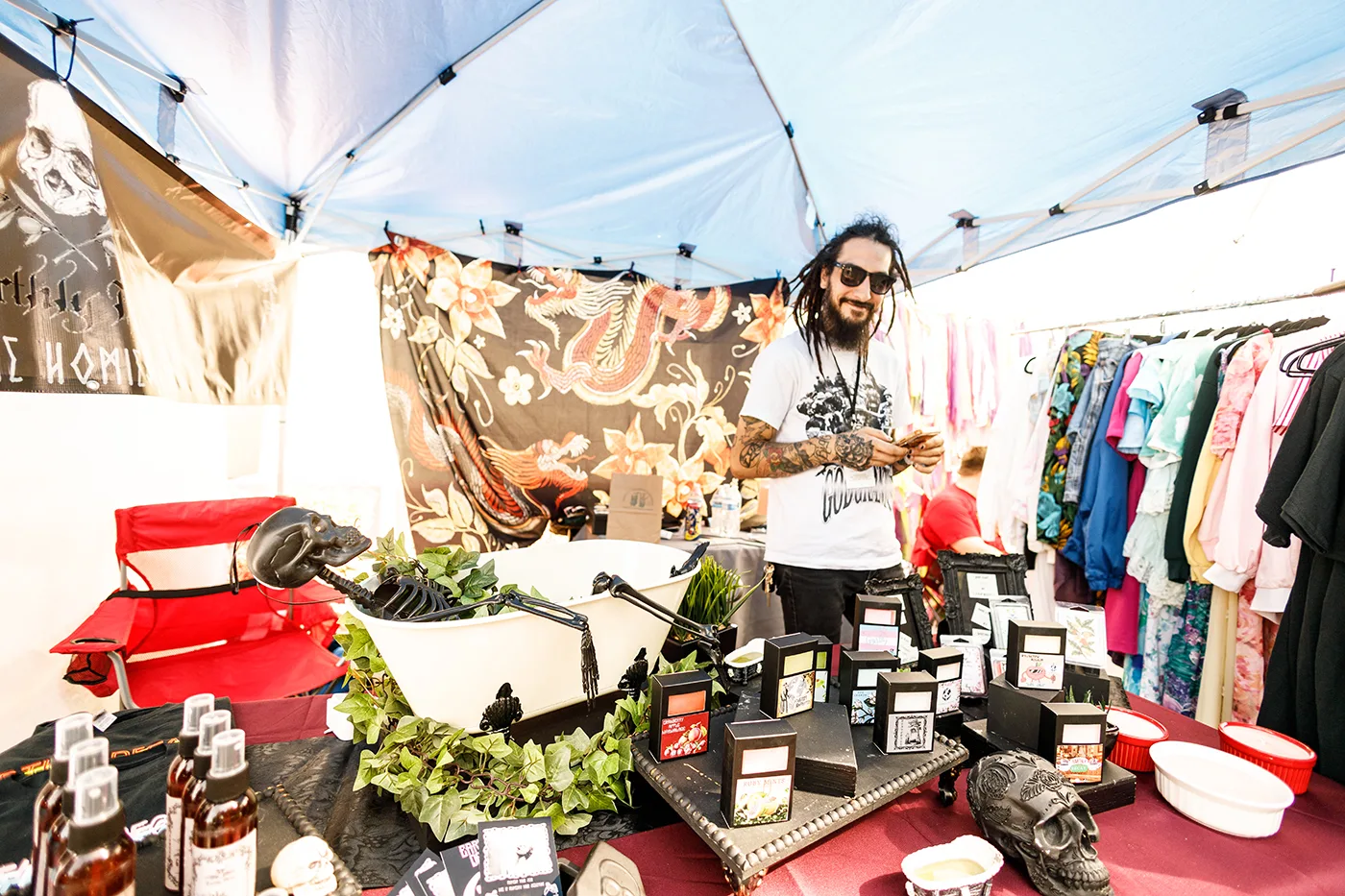 A lot sticks out, though, and what you saw partly depended on what day you came—Friday had Harmons’ VIP Lounge, offering great seats to excellent acts like, XDX, Detzany, Angie Petty and headliner Joshua James. All weekend, outdoor and indoor artisans took up the entirety of the southern half of the fair park. Attendees (and their dogs) browsed them all, including vintage vendors like MAEK Shift, who brought upcycled looks and retro patterns, artisans like SoyMurga, who offered handcrafted scents, sprays and self care goodies, and food vendors like Prime Corn who showed us the tasty meaning of “Pre-Hispanic Vegetarian Food.”