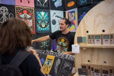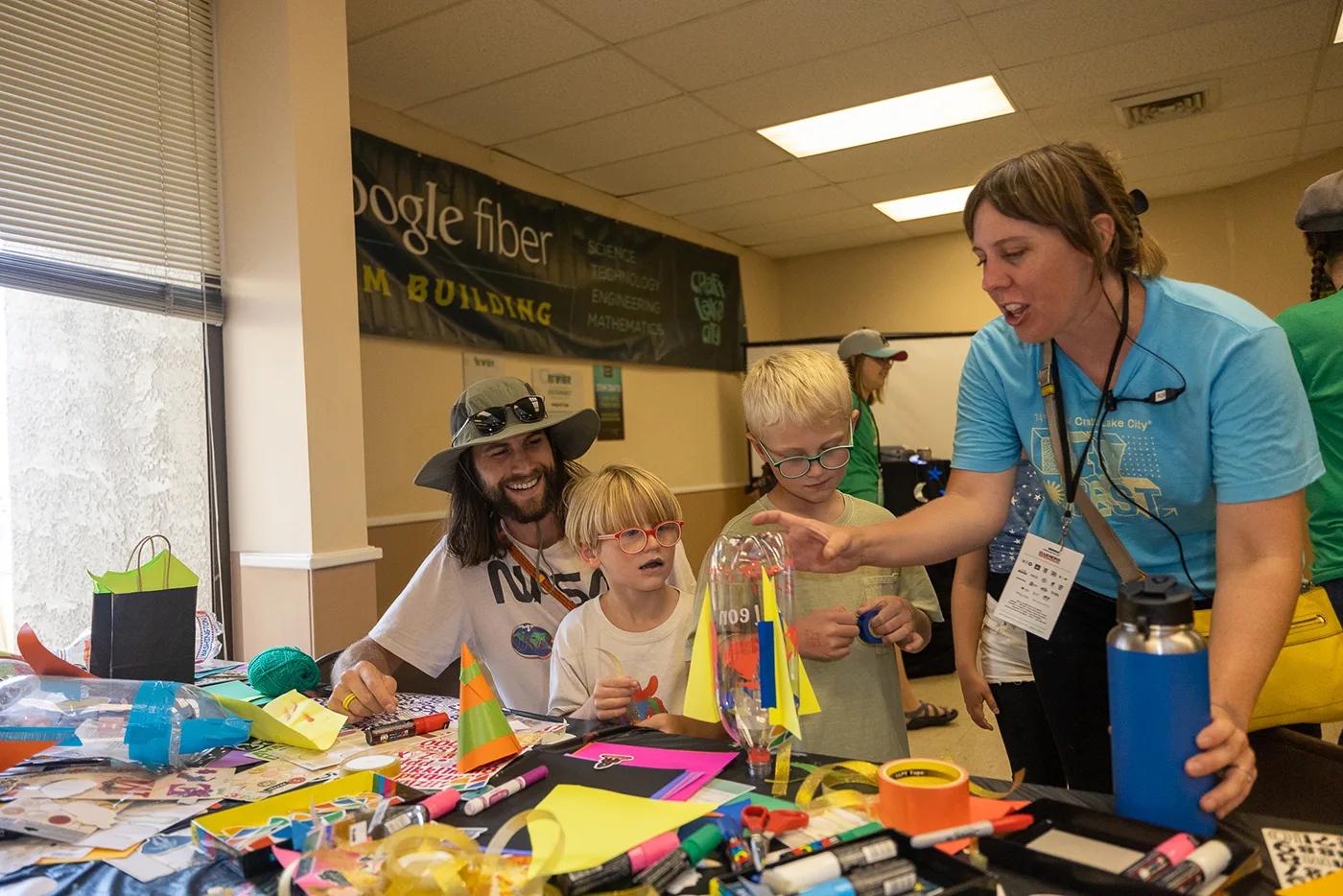 On Saturday, young entrepreneurs hawked their custom-made wares, such as Sydney’s Seaside Creations, selling handmade jewelry from sea shells. It was also Pacific Islander Heritage Month Day, and so we celebrated with artisans like Kalani Tonga, a hafekasi (biracial Tongan/Swedish) artist and published author from Midvale whose artwork takes traditional Polynesian patterns and employs them in unusual ways and with a non-traditional colors. Our Google Fiber STEM Building hosted a Sustainability Day, giving DIY Engineers like Fungal Focus a spotlight to show us how mushrooms are linked to the health of our planet.