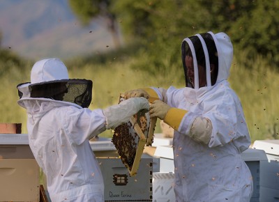 Each of their 36 hives is run by its own queen bee, and every queen has a name, such as my personal favorite, Queen Freddie Mercury. The names are picked by the sisters and their families, or by backers in their Adopt-A-Hive program—individuals pay $50, get to name their hive’s queen, and receive a whole frame of raw, capped honeycomb at the end of the season.