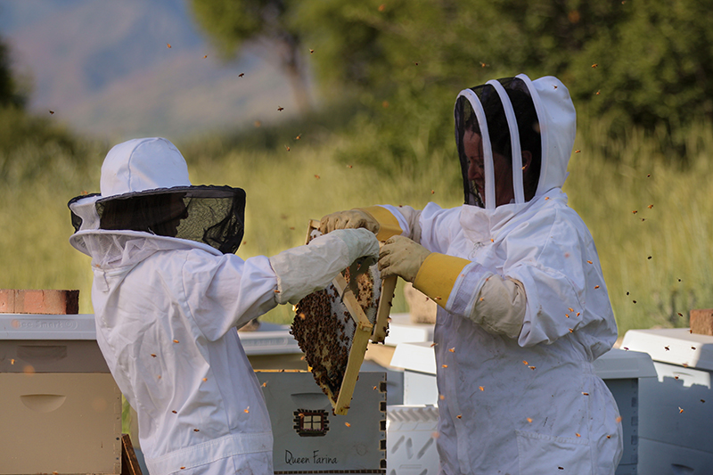 Queen Farina, purveyors of raw honey and honey-based products, began as a scheme to keep Aubrey Johnson’s kids busy. “My sister called me up one day and said that she was trying to think of something to get her kids involved with to teach them the value of work,” says Gina Nielson, Johnson’s sister. Johnson suggested beekeeping, so the sisters and their families pitched in on a couple of hives and set up a bee field in Cache Valley, Utah, where they live. Last year, after a couple of years of successful honey production, Queen Farina became an official business, named after their mother’s maiden name. They now boast 36 hives and sell a lineup of goods, including creamed honey, handmade balms and beeswax, in addition to straight-up raw honey.