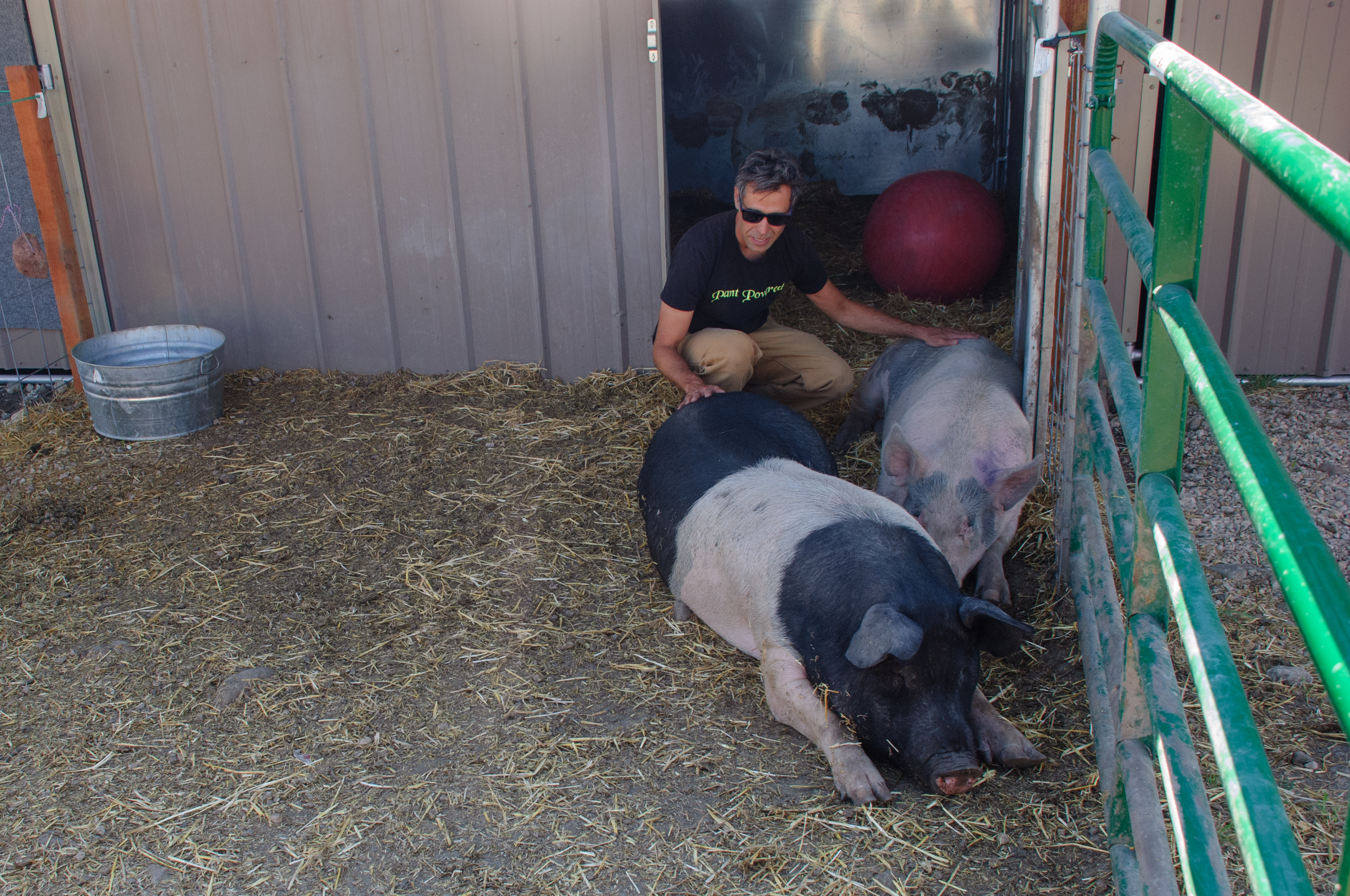 According to Swartz, the idea was hatched back in 2008, but the place to do it evaded them; Santa Barbara was out of their price range. One day on the way between Park City and Peoa, however, after searching property after property along I-15, Swartz and Lockey crossed the path of a large property for sale, bank-owned. Swartz notes that the property was incredibly inexpensive, seeing as it was the depressed year of 2009 and that the property was near a rock mine and extremely hard to access in the winter. Fast-forward to 2017, and after you’ve driven up and around the bends of Sage Mountain’s dirt road, their sturdily proportioned, modern home greets you at the top of the hill along with the pens and fences that are the animals’ homes. It is from here, surrounded by, yes, sage-covered mountains and hills, where Lockey and Swartz hatch their plans. Lockey describes the birth of Sage Mountain as such: “We decided that we could have … this small sanctuary coupled with outreach in the schools and the city,” he says. “From the beginning, we’ve been focused on [the question], ‘What’s the best way we can get people off eating animals?’”