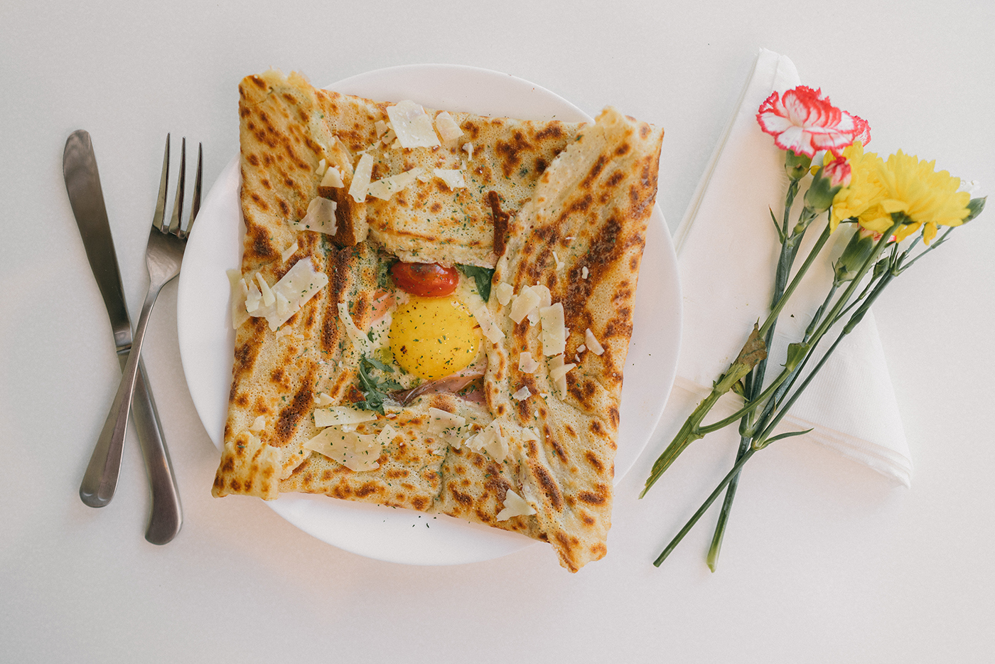 Few foods can transcend the boundaries of mealtime and feed you fully at any time of the day—crepes are one of those surprisingly versatile foods that magically lend themselves to any flavor profile depending on what you put inside. At Dali Crepes, they take full advantage of this fact by offering a varied menu that highlights crepes in sweet, savory and distinctly breakfasty lights.
