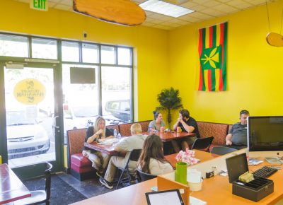 Greeting each customer with an aloha or “hang loose” hand signal, Hawaiian island happiness takes over at this small eatery, which is filled with sunny, yellow walls and a few dining tables. Dine in, take your food to-go, or place an order with Door Dash. With plans to expand by adding a food truck in the near future, the Hungry Hawaiian owners are not only pursuing their dream of serving real, feel-good food, but also honoring and reviving owner Keni Aikau’s late father’s passion. Having catered with his dad since he was a child, it was a natural move for Aikau to start up the grill and host pop-ups as a way to help cope with his father’s passing in 2010.