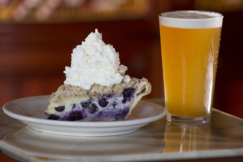 Pairing: This fruit-forward weiss beer finishes with a crisp, refreshing effervescence that nicely complements the sweet yet tart Blueberry Sour Cream Pie. The Pie explodes with the refined sweetness of the blueberries initially, and the whipped cream and walnut streusel top bolster the frutiness as the tart tones set in. With this light hef, the pie washes down easily, as the crust is light and flaky, which sets this pie apart in being a game-ender—it is more of a “session-able” pie, so to speak. The apricot notes of the beer meld with the almost caramel-tinted whipped cream, which allows the beer to transcend into a near meta-pie. Going down, the crumbles of the streusel top provide a hearty counterbalance to the subtly sweet beer. As the pie and beer begin to disappear, the crust washes down smoothly for a delightful, dulcet finish. –Bryan O’Meara, Owner