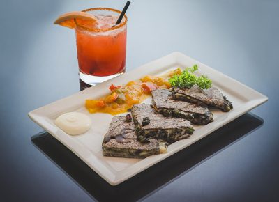 Putting passion and art to the test at Frida Bistro, I naturally started with the soup the day: the margarita menu. Sticking with a classic, I ordered the El Jefe ($12), prepared with tequila and Grand Marnier with a salted rim—it was smooth and refreshing. My husband, Scott, decided to spice it up with the Papaya Habanero ($10). It’s tasty—however, it’s too much heat for me at once. If you love tequila, you may enjoy sipping on one of the few mezcals on the menu.