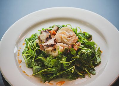 My favorite dish of the night was the Ensalada de Octopus ($11). Resting upon a bed of arugula, the marinated octopus and shrimp paired with sliced peppers, onion and a lemon dressing. The dish explores a fresh and light temptation of boldness. Grilled proteins pop with a hint of spice from garden-fresh jalapeño, far surpassing a standard house salad prior to a main course.