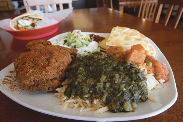 The highlight of the menu is the Curry Fried Chicken (Plate, $9.99, Piece, $1.49), which is simply unique. It takes more than a few minutes to make, so don’t wear your “where’s the fast food, I gotta go now” pants, or you’ll get them in a knot. Even though the fried chicken is available in individual pieces, it is better as one of the dinner options. It’s a whole meal, unlike the wraps, which are à la carte. The chicken is tender and flavorful, and when you finish, you suddenly notice that your mouth is quite hot—but you don’t notice while eating it. Neat trick. I don’t eat fried chicken very often, but this is pretty awesome. Chicken fingers don’t compare. This is fried chicken you haven’t had before. The spices are romantic and old-world.