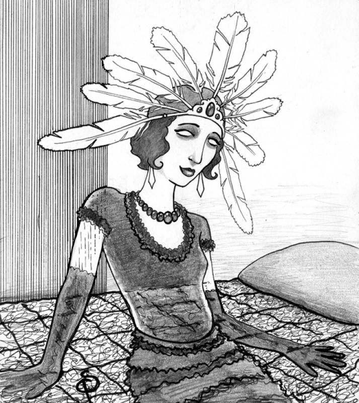 Murgatroid (shifting a bit): Well, at times I could be a very silly girl and work myself up into all sorts of irrational states. I suppose it was partially the times, the mid 1920s. Everything had to be enormous and over the top––every emotion, every gesture. Life was like a constant cocktail party full of thespians who never stop acting and are always trying to out-do everybody else. I was utterly in love with Rudolf Valentino, and I was convinced it was only a matter of time until our two paths came together and joined into one. We would love for eternity and fate would be satisfied. Then he up and croaked! Just imagine the depths of absurd emotion I flung myself into. I knew that Rudy had immersed himself in the Great Salt Lake, and I believed the lake would be the conduit through which Rudy and I would come together. I traveled by train to Salt Lake City and out to the resort that used to be at the lake. I had planned to swim out a way and drown myself. Well, that lake seems to be only three feet deep and is so salty a person cannot sink. Oh, I was annoyed to be sure. I tried to hold my head under the water for the longest time. Suddenly it dawned on me how silly I was being. I laughed inadvertently, sucking in gallons of salt water and brine shrimp. That finished me. I felt so silly––it was probably a good thing Rudy wasn’t on the other side to greet me.