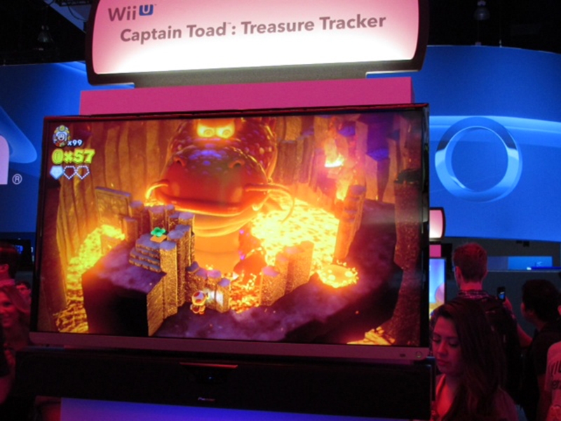 Next up in the Nintendo booth was Yoshi’s Wooly World. Kirby’s Epic Yarn was such a hit that Nintendo has decided to crochet another one of its beloved IPs. Yoshi was cute before, but all done up with yarn, Yoshi is adorable. The detail in this game is amazing–you can see the little errant hairs that you get with wool and yarn strings as Yoshi wanders through his new world. It looks so good, you forget that it’s on the Wii U and not one of the other next-gen consoles. The co-op play is fun, and reminiscent of the New Super Mario Bros., except here, you can accidentally turn your friend into an egg. You can’t “bubble” like you could before, but if your teammate falls off-screen, they’ll turn into a flying egg. There are new yarn mechanics–things with a bow can be “tongued” and unraveled to reveal secret passages or treasure. Yoshi’s tongue is his most powerful weapon in this Wooly World.