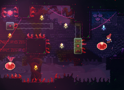 What she lacks in experience, Madeline makes up for in a mysterious ability, allowing her to jump and dash fixed distances in any of eight directions: up, down, left, right and diagonally. You can dash once per jump, and it resets once you touch ground. Madeline can also grip to walls and jump off them. Madeline is nothing if not capable, but the task of climbing Mt. Celeste demands the complete extension of all her abilities: precise timing and aim, a grasp of momentum and space. The difficulty works toward an end, though. What makes Celeste transcendent among its peers is how its gameplay and emotional arcs fit the same journey, how illness, health and triumph can all occupy the same space.
