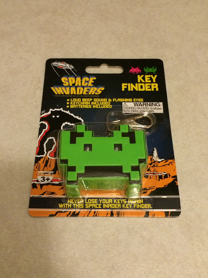 Geek Fuel August 2015 – Space Invaders Key FinderWhen we first started reviewing these boxes, we were under the assumption that you received bonus items in every box. We were corrected by the company who said on the first box you get three items for the most amount. Sadly, we only received two. They corrected that in this box by sending us this nostalgic symbol to key finding. Basically it uses watch batteries and a whistle system, all you need to do is set a whistle pitch and turn it on, and when you need to find your keys, whistle loudly and it will make noise. Super rad!