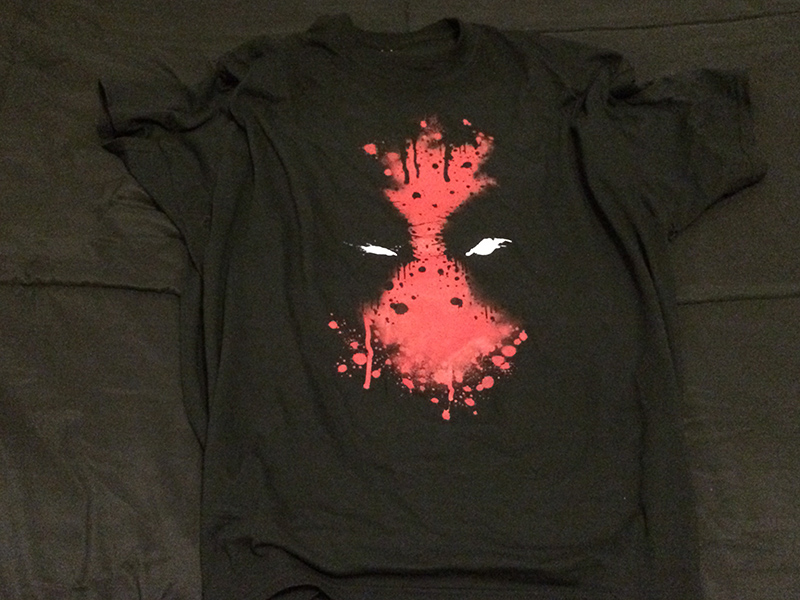 Geek Fuel August 2015 – Deadpool, Bloody DeadpoolYep, it’s a Deadpool shirt. I think we’re nearing the end of people’s obsession with Deadpool, especially since everyone dresses like him at every con you’ve ever attended since 2009. We’re bordering on the point where there’s too much saturation of him just before the movie. That being said, this is actually a cool shirt done in a creative way with blood spatter—a nice addition to my collection of black comic book shirts.