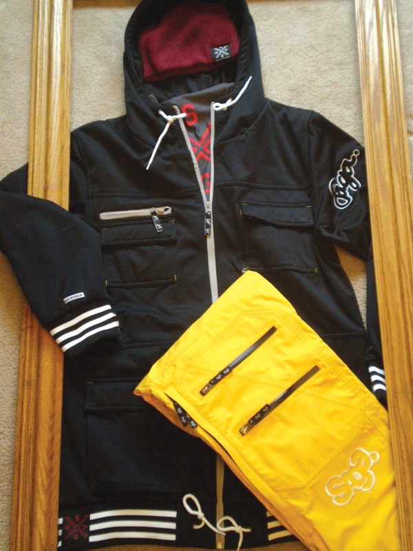 Saga’s Anomie Pant and Jacket combo have been a mainstay on the scene for the past few seasons. The jacket is offered in a traditional one-color way, or in a bi- or tri- pattern for added flash. I chose to ride in the grey. Highly functional, the jacket offers fully tapered seams, snow gaiter with jacket-to-pant interface, micro fleece for neck and hands, and enough pockets to carry all your soft goods and gadgets. For a shell, the coat provided plenty of warmth and waterproofing, but breathed incredibly well in part because of its zippered ventilation system (in crucial areas like your stink pits and back). Incorporating the “Team Fit,” the jacket offers a longer length while remaining truly proportioned in chest width, thus eliminating the box factor. The pants are designed in a straight leg fashion. The tech is pretty much the same as the jacket and also performed well in our extremely dismal conditions (currently).