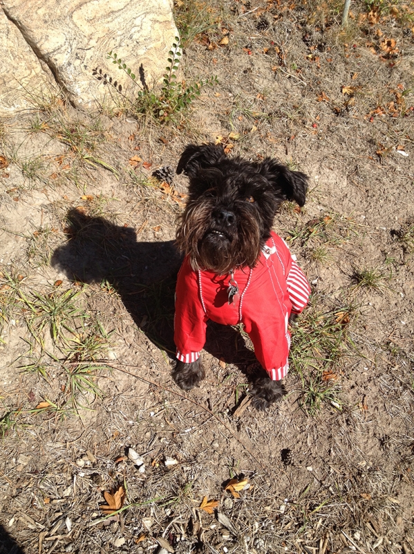 Jack is a trooper. He loves running on ”the trail” with Dad or just going on hikes and walks. Always eager to get out the door, we wonder if he stops to consider the elements—temperature, wetness, etc. ’cause he doesn’t really seem to think about the getting-dirty part. Enter Zippy Dynamics. Truly “luxury for your best friend,” this is a track suit for dogs—this model is called the “Sparky.” It’s nicer than any windbreaker or track jacket I’ve ever owned personally, as it touts a soft, red-and-white-striped liner and durable fabric for the outer shell. There is only liner at the front and back areas where the legs meet the dog’s abdomen, which allows breathability and flexibility. Despite Jack being an avid trotter, he’s a bit of a couch potato at home, so he wasn’t so inclined to put it on, though the garment itself is easy to put on a more willing canine: Simply put in the front legs, put in the back legs, fasten the zipper from the hind to the neck, then zip up the legs for a taut fit. Don’t worry—the dog’s potty parts aren’t covered. Being that this Sparky wasn’t necessarily sent with Jack in mind initially, however, it didn’t quite fit (it was too tight), but that’s not Zippy Dynamics’ fault. It’s a medium and he’s a Standard Schnauzer. They warn that their guide isn’t exact, but I think a large would have been too big. With precise measurements, dog owners should be able to find suitable sizes and fashions! –Honk Carnie