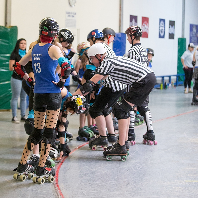 Roller Derby is an intense sport, not just because it is a contact sport on skates, but also because there are Refs constantly yelling to tell you if you have a penalty. Many times when I have been called on a penalty, I felt as though the refs were upset with me (which is totally untrue, the refs just have to yell because no one can ever hear anything). It was inspiring to see the amount of heart and courage these kids have when playing the game. They fall, get called out by refs, hit by opponents and still have the gusto to get back up and keep playing.