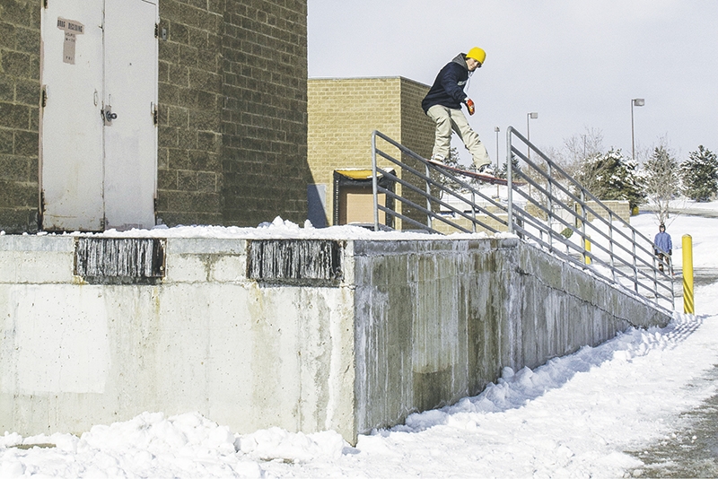 Larson never had serious aspirations of becoming a pro until things started falling into place for him. In 2009, his sophomore year of high school, he met Jeremy Seegmiller and Dylan Thompson and started riding with them. “Dylan and Jeremy kind of showed me the ropes,” he says of tagging along with them on urban rail missions. Thompson taught him all about setting up a spot, using a bungee and dealing with cops. Shortly after, Thompson and Seegmiller introduced him to Cole Taylor, a filmmaker for Technine. He started receiving flow from Technine and, eventually, was officially placed on their Am team. From there, Taylor talked to Cyle Cadem of Electric, and showed him some of Larson’s footage. Cadem was impressed and put Larson on their Am team. Before he had even graduated high school, Larson was already stacking sponsorships.