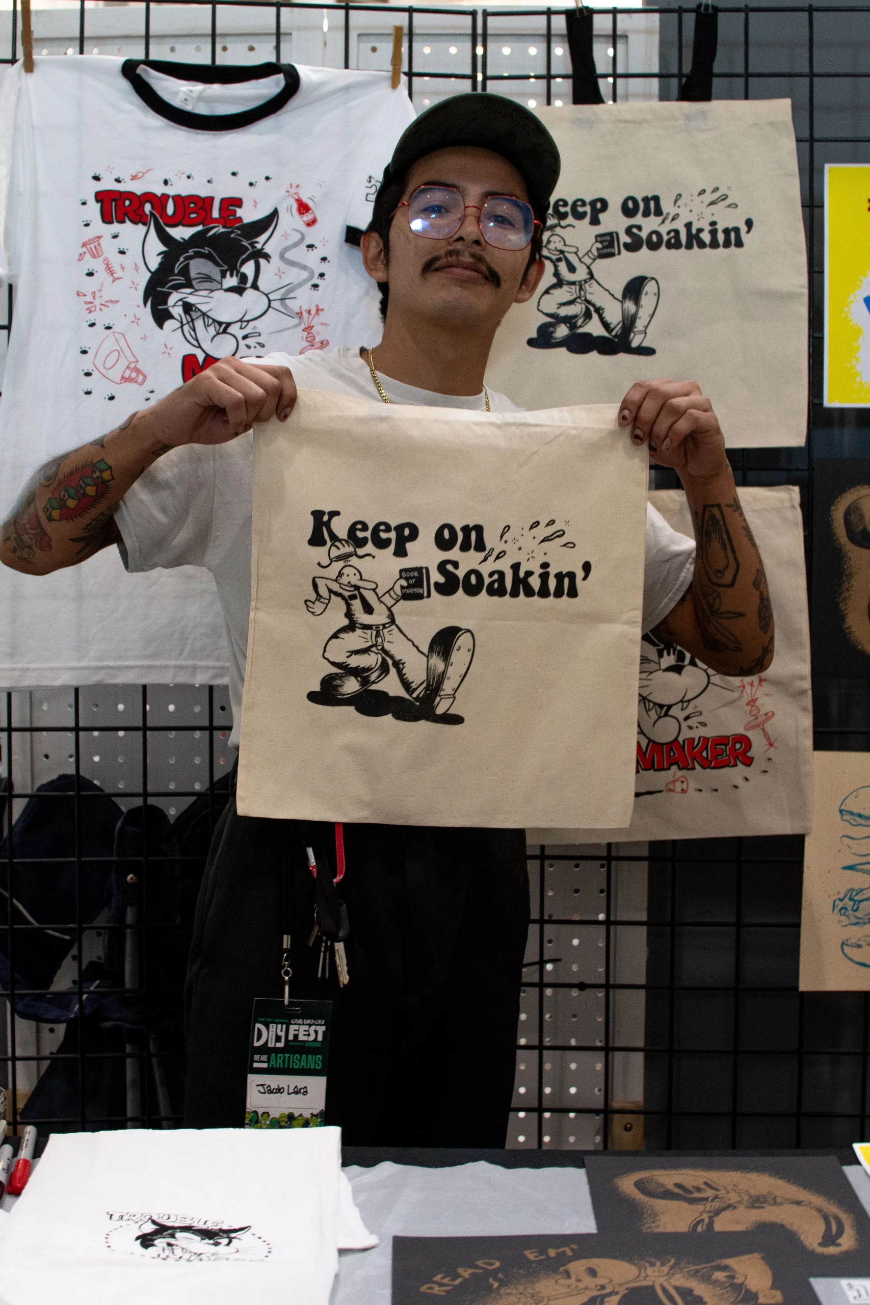 Omeek’s eclectic apparel is for sale at DIY Fest. Photo: Chay Mosqueda.