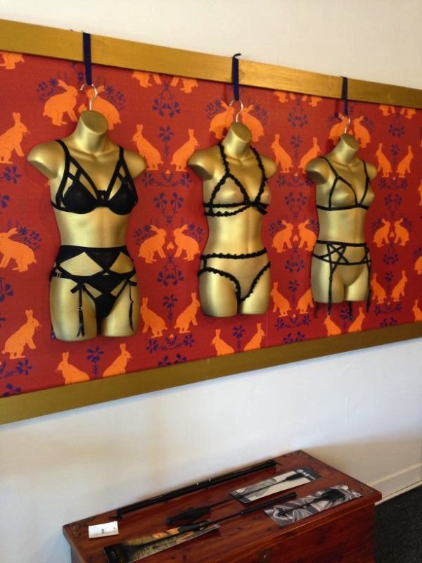 Not only is there a great selection of high-quality toys of the, ahem, traditional variety (vibrators from top-notch companies like LELO and We-Vibe), but also some great fun stuff I’m not as familiar with. Best of all, whenever possible, Fei stocks the store with goodies made by local entrepreneurs and designers, like BONDaids—luxuriously soft restraints that make S&M downright comfy—and deliciously strappy lingerie by designers like Anjel Skull. Additionally, the shop’s lovely logo and much of the art that adorns space were created by local artists, and the event was catered by one of our yummiest neighborhood restaurants, The Tin Angel Cafe.