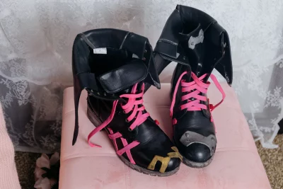 Jinx boots: Take a pair of rugged combat boots and hot glue some foam plates and neon splashes, and you get a fascist-kicking pair of stompers perfect for Arcane’s haywired harlequin, Jinx. For Smith, the character herself symbolizes standing up for her own rights. “If we’re going to dress up as the characters that might be revolutionaries … maybe you should use that passion as a call to action for yourself,” Smith says.