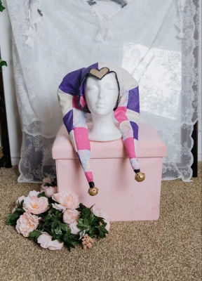 Fizzarolli jester hat: Dazzling in glittery red-and-pink hues, this bit of headwear is inspired by the demonic clown from Helluva Boss. “This one took two days to make,” Smith says. “I would make a pattern, sew it, try it on and it wouldn’t fit … I’m happy with her now.” It’s a labor of love that jiggled all the way to the LVL UP EXPO in Las Vegas in April.