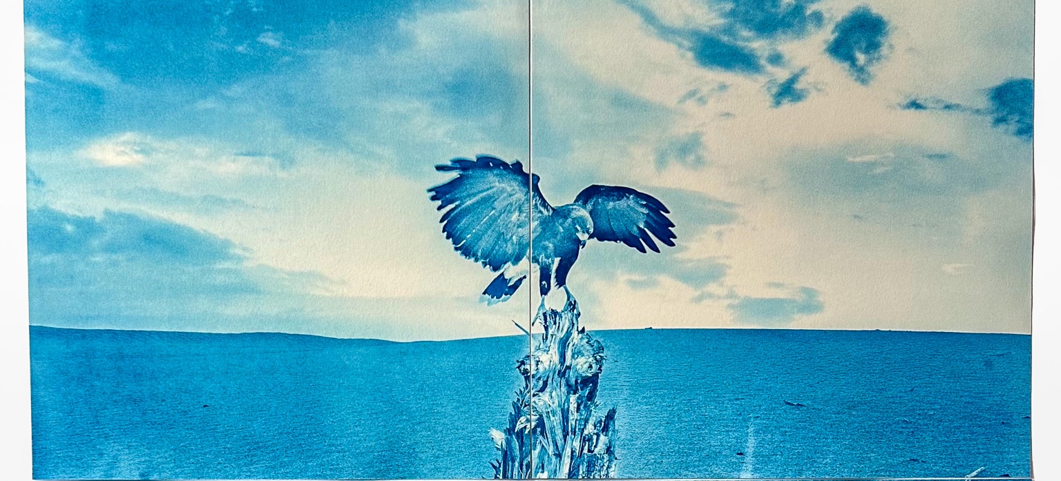 Fuller’s cyanotypes of raptors—keystone species and ancestral messengers—invite viewers into a quietly altered reality: one where reciprocity with the nonhuman world is not a loss or a dream, but a vivid presence. These images are not documents of what has been, but sketches of what could be. Similarly, works by Sinha and Tsoutsounakis draw viewers into their own liminal, speculative worlds.