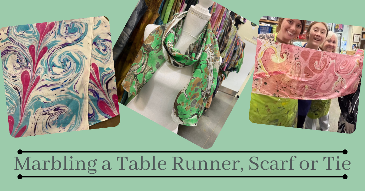 Join in the fun learning how to create a Marbled Table Runner, Scarf or Tie!!