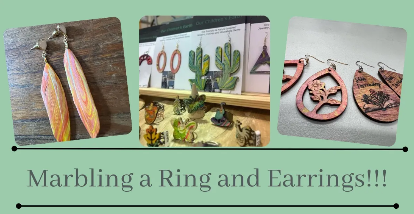 Marbling Jewelry (Earrings and a Ring) Class Drop In Anytime on February 14th 3:00pm to 5:00pm Stop by Anytime Between