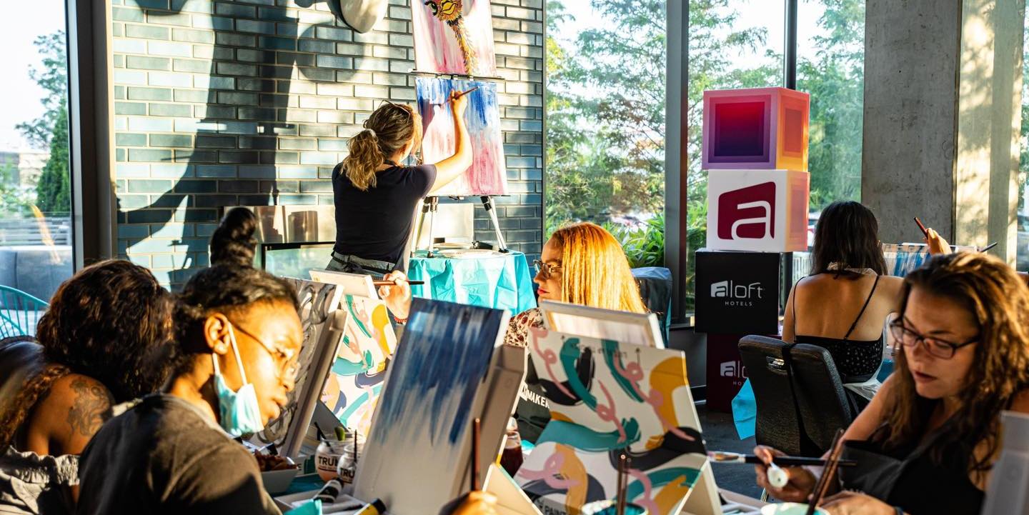 No experience required! Just follow along while our Social Painting Instructor guides you step-by-step through the featured painting in about two hours. If you’re feeling creative, change the colors to suit your décor or go completely rogue. We provide all the painting supplies: a 16”x20” canvas, acrylic paint, brushes, smock, music, and a good time.