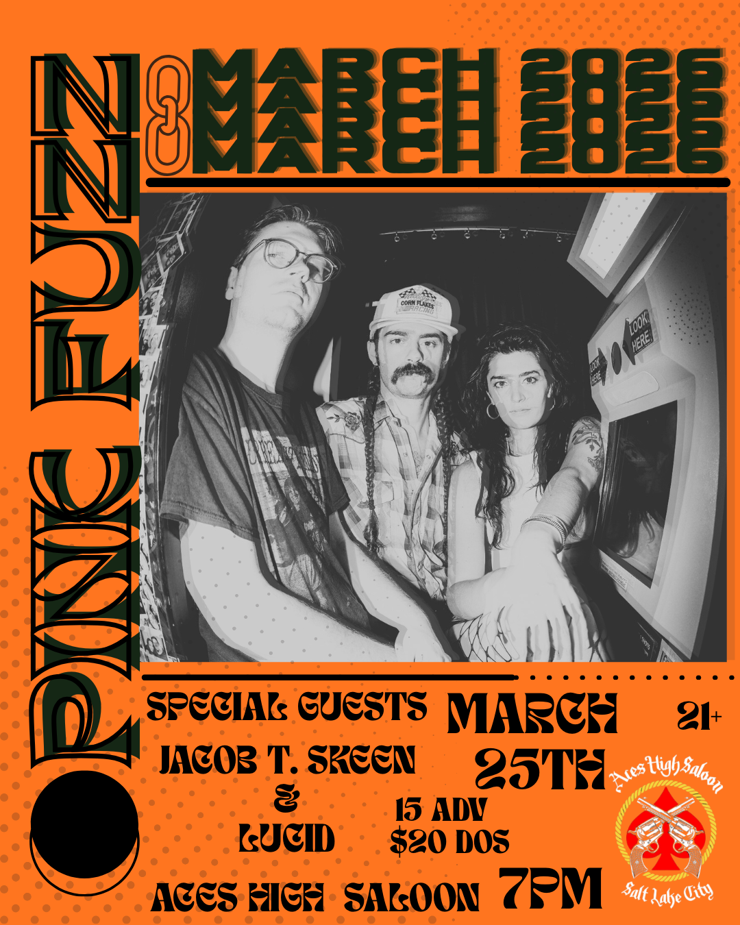 Aces High Saloon, Wednesday March 25th, 7pm, $15 ADV, $20 DOS