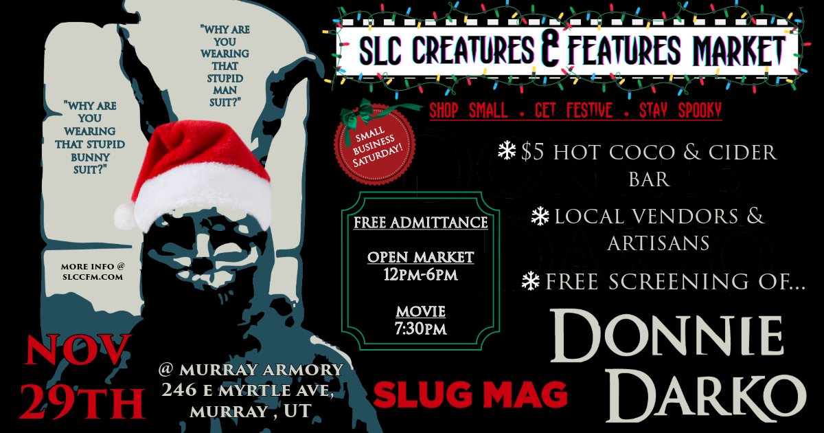 Come for the 20+ alternative vendors, seasonal treats, and the coco & cider bar – stay for the FREE screening of the Sci-fi/Thriller film Donnie Darko (Rated R) ๐