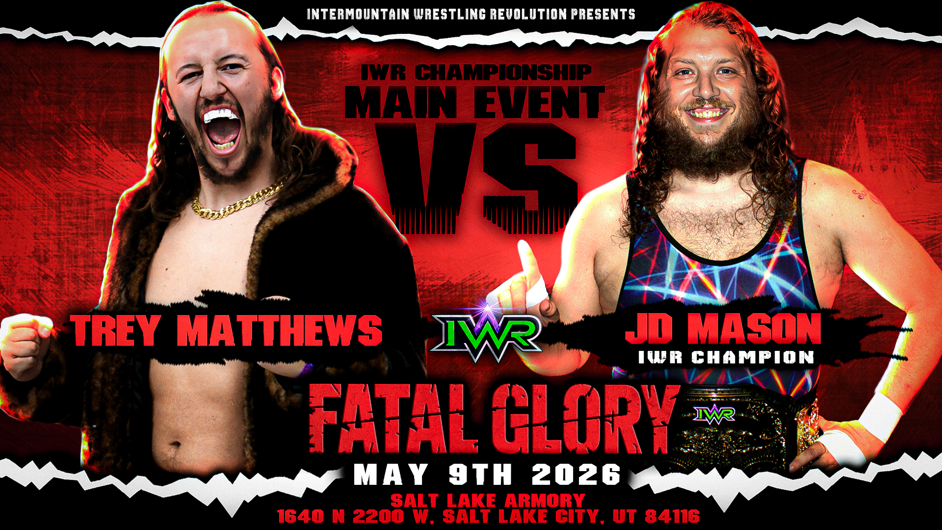 Intermountain Wrestling Revolution presents Fatal Glory, a high impact night of professional wrestling coming to the Salt Lake Armory on Saturday May 9th 2026. Doors open at 5:30 PM and the event begins at 6:00 PM.