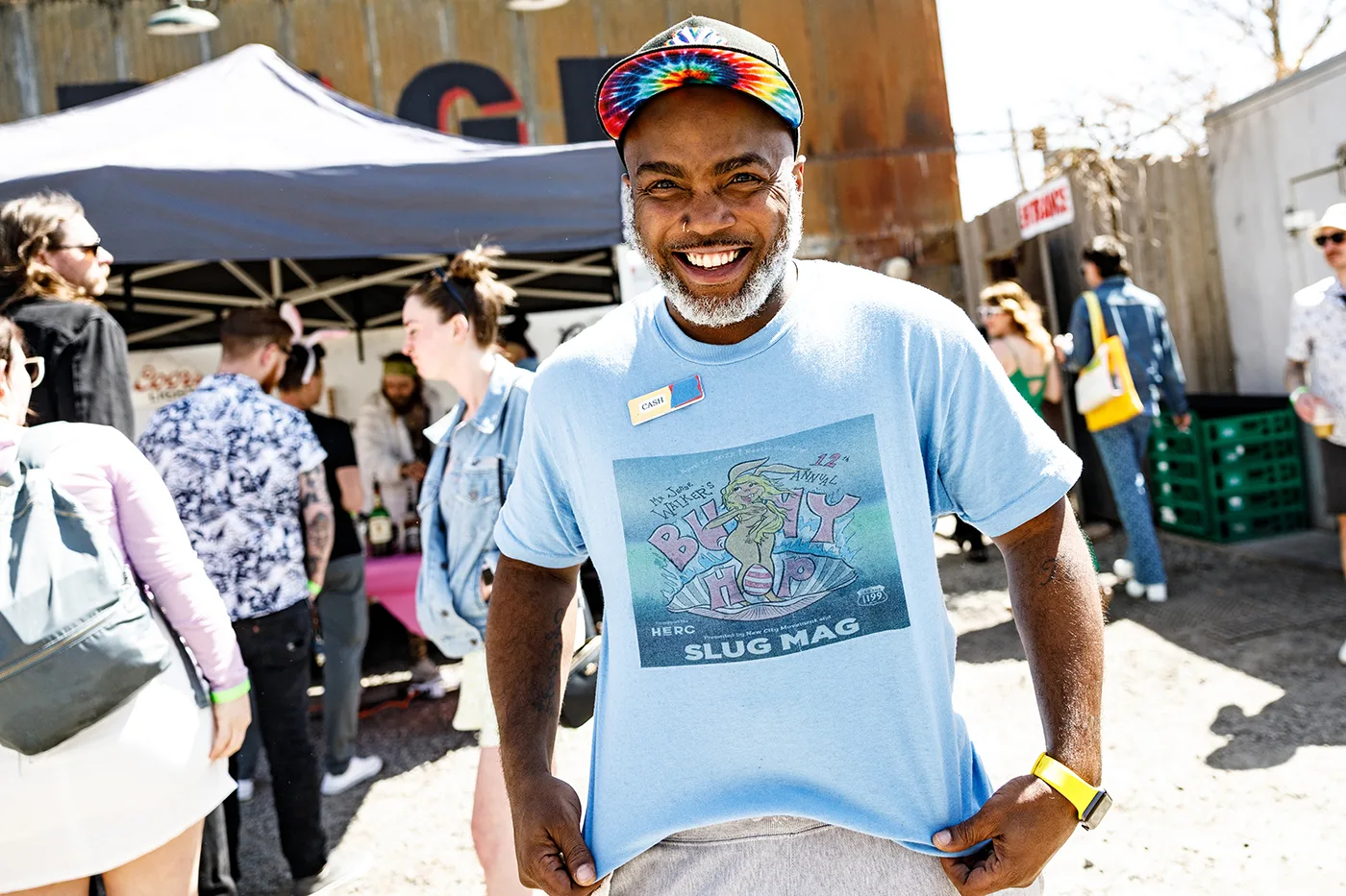 Cash, serving drinks wearing a Bunny Hop T-shirt. Photo: John Taylor.