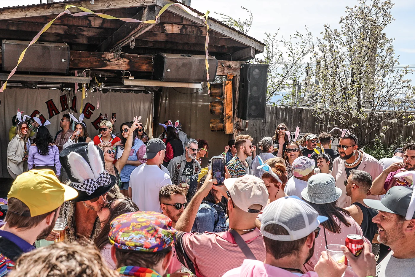 Jesse Walker felt a wild mix of emotions as his party started hoppin’—the 12th Annual Bunny Hop presented by SLUG Magazine hosted by Garage on Beck. After rain flooded the DJ booth with four inches of water in 2019 and a global pandemic in 2020 pressed pause on parties for two years, emotions were bound to run high—Walker simply glowed as he greeted DJs and guests—he’s so happy! And he’s not alone. Long-time Bunny Hop veterans and first-year bunny hoppers ordered Mimosas or Moscow Mules and tore into the Garage on Beck’s brunch buffet as the sun warmed a chilly patio scene.