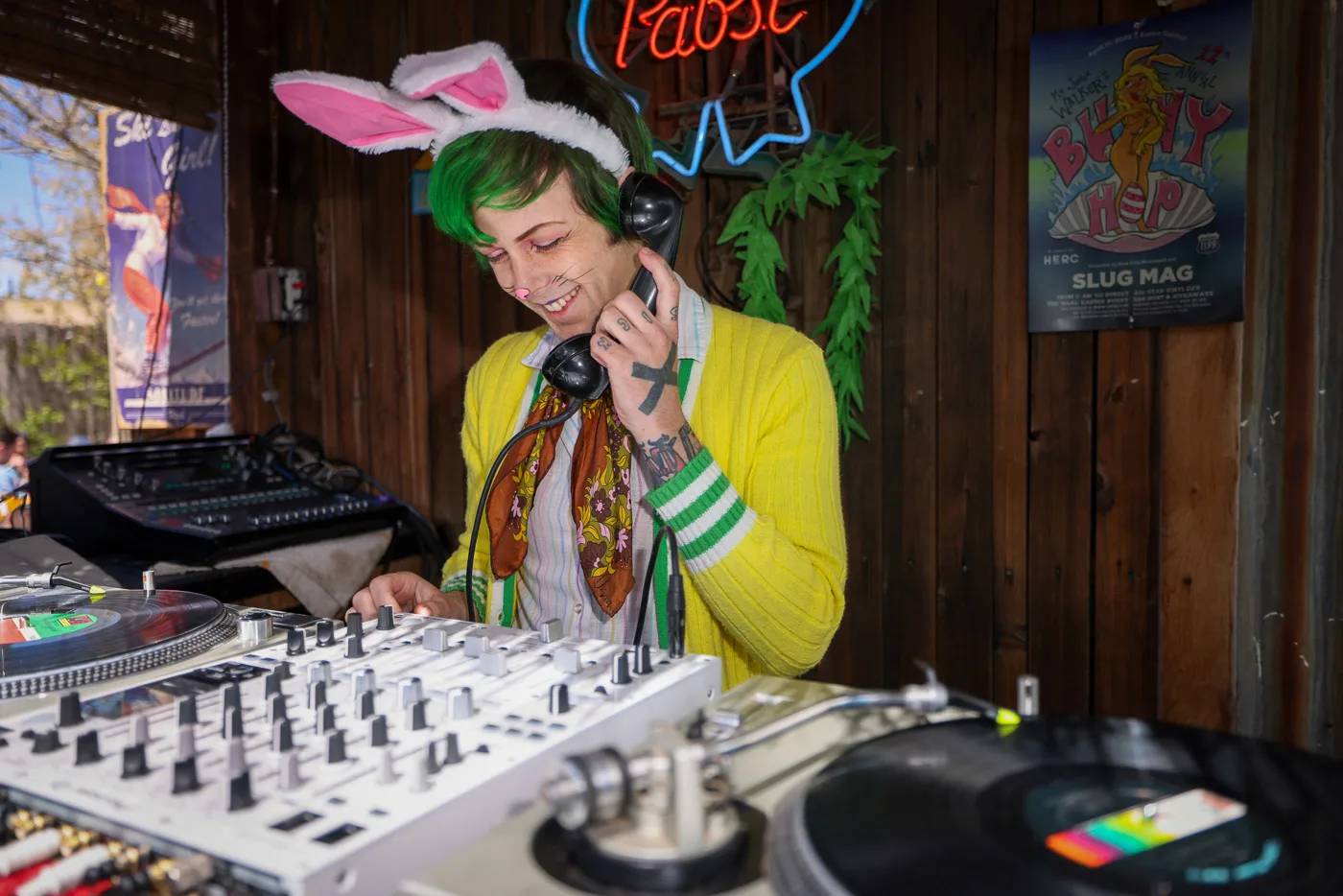 DJ playing music at Bunny Hop presented by SLUG Mag. Photo: John Taylor.