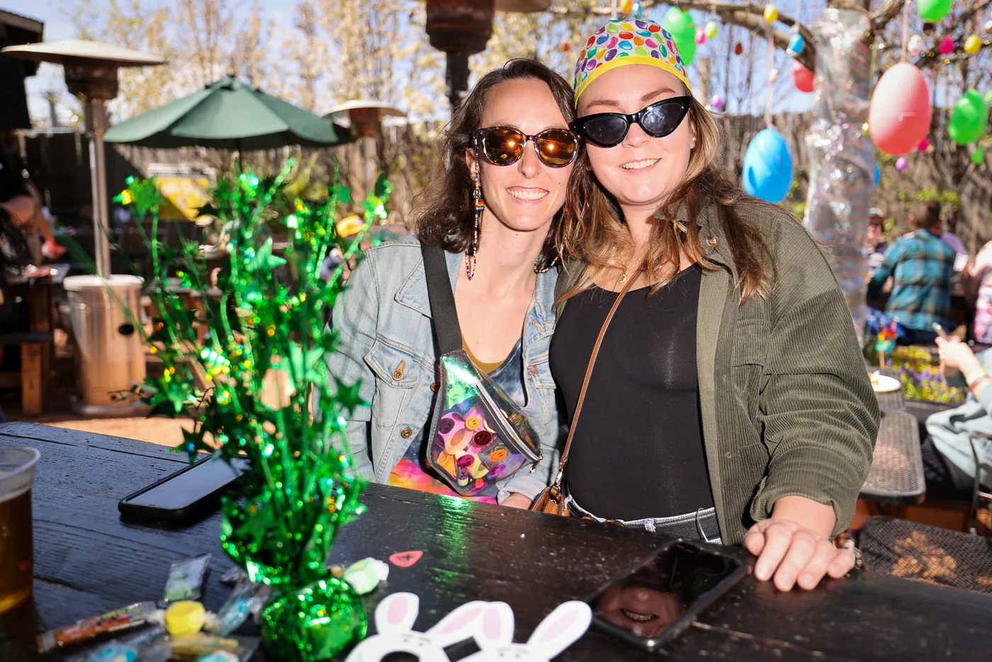 (L-R) Ashley and Q brought the matching bunny ears. Photo: John Barkiple.