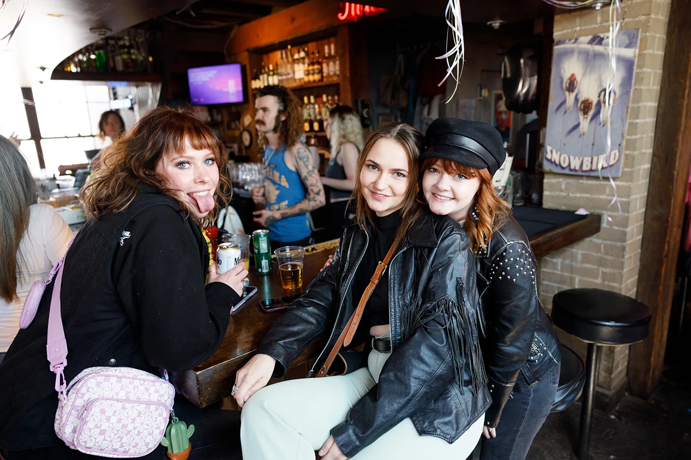 Posing for photos while having drinks at the bar. Photo: John Taylor.
