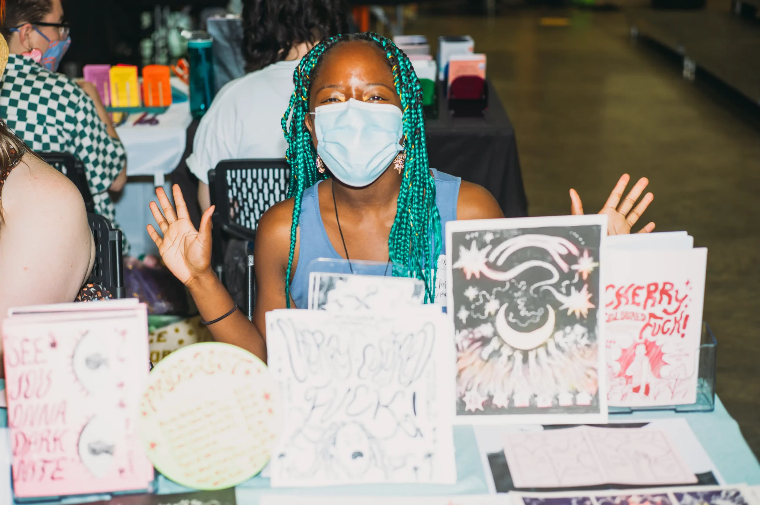 Aranteza Penā Popo with her zines See You Onna Dark Nite and Cherry Colored Fuck. (Photo: Tyson Call)