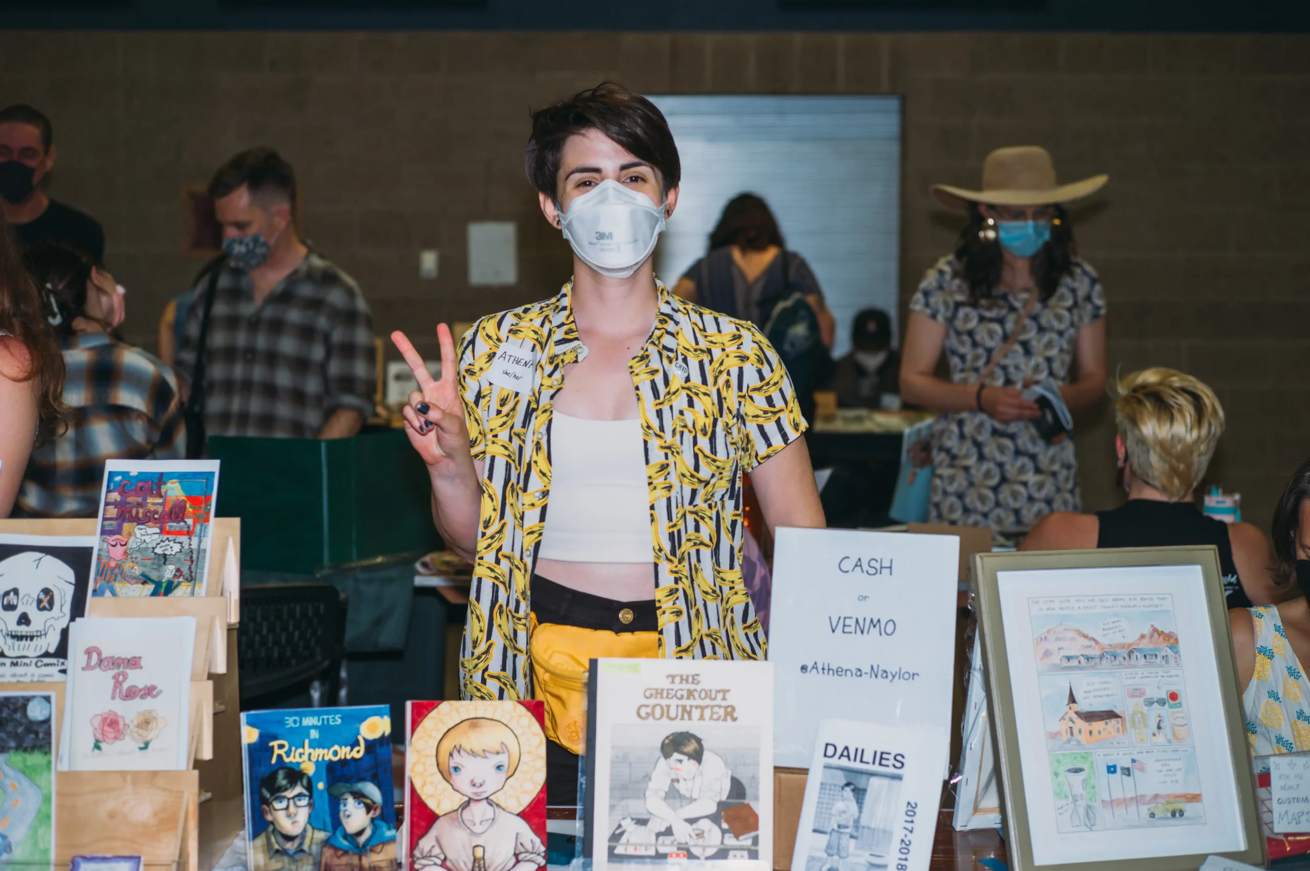Athena Naylor with her zines, The Checkout Counter and Dailies. (Photo: Tyson Call)