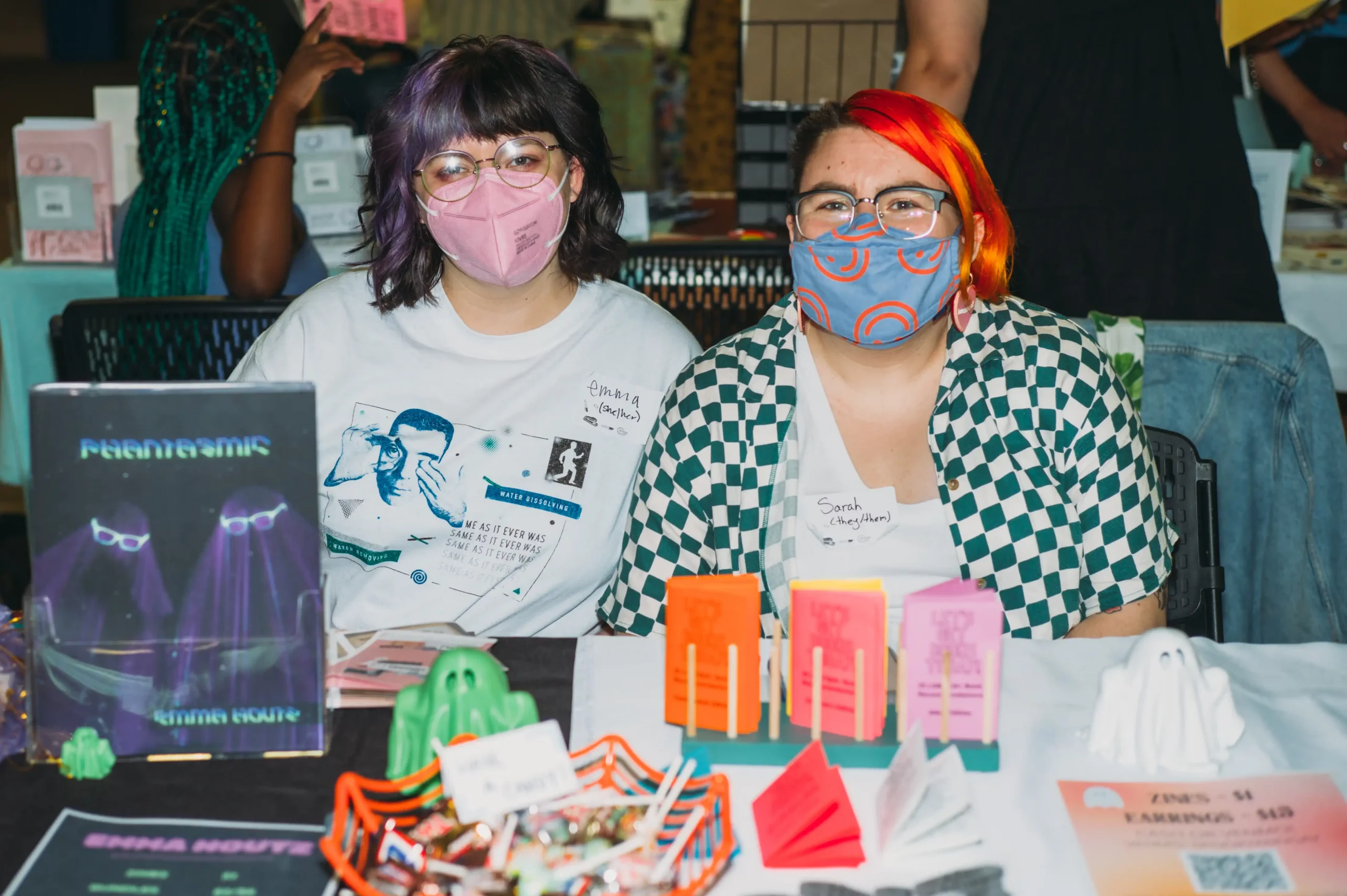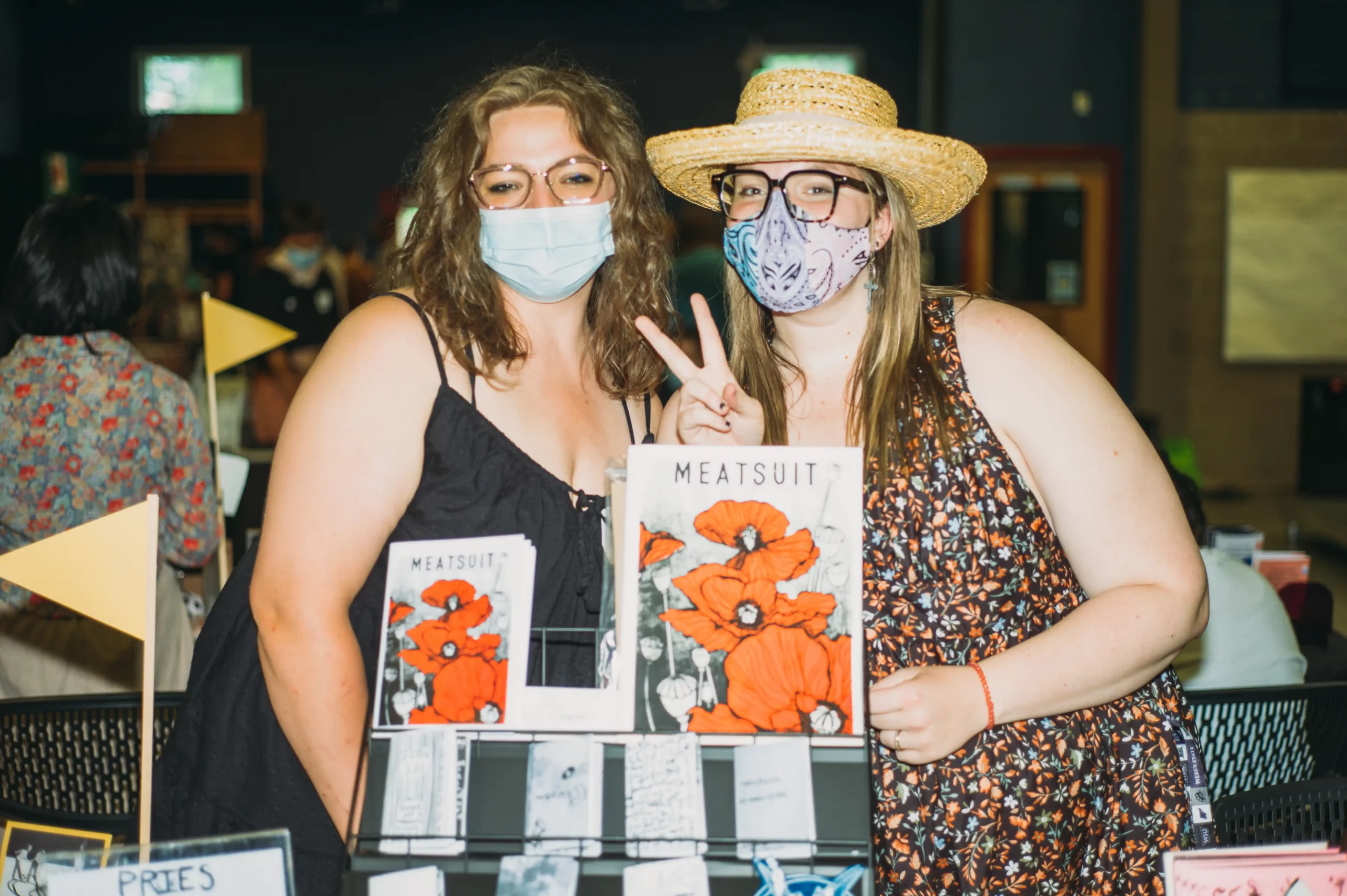 (L-R) Liberty Gibby with her zines Meatsuit and Inspirational Quotes by Terrible People. Lindsey Merritt with her zines Mantra and Nefarious Little Creatures. (Photo: Tyson Call)