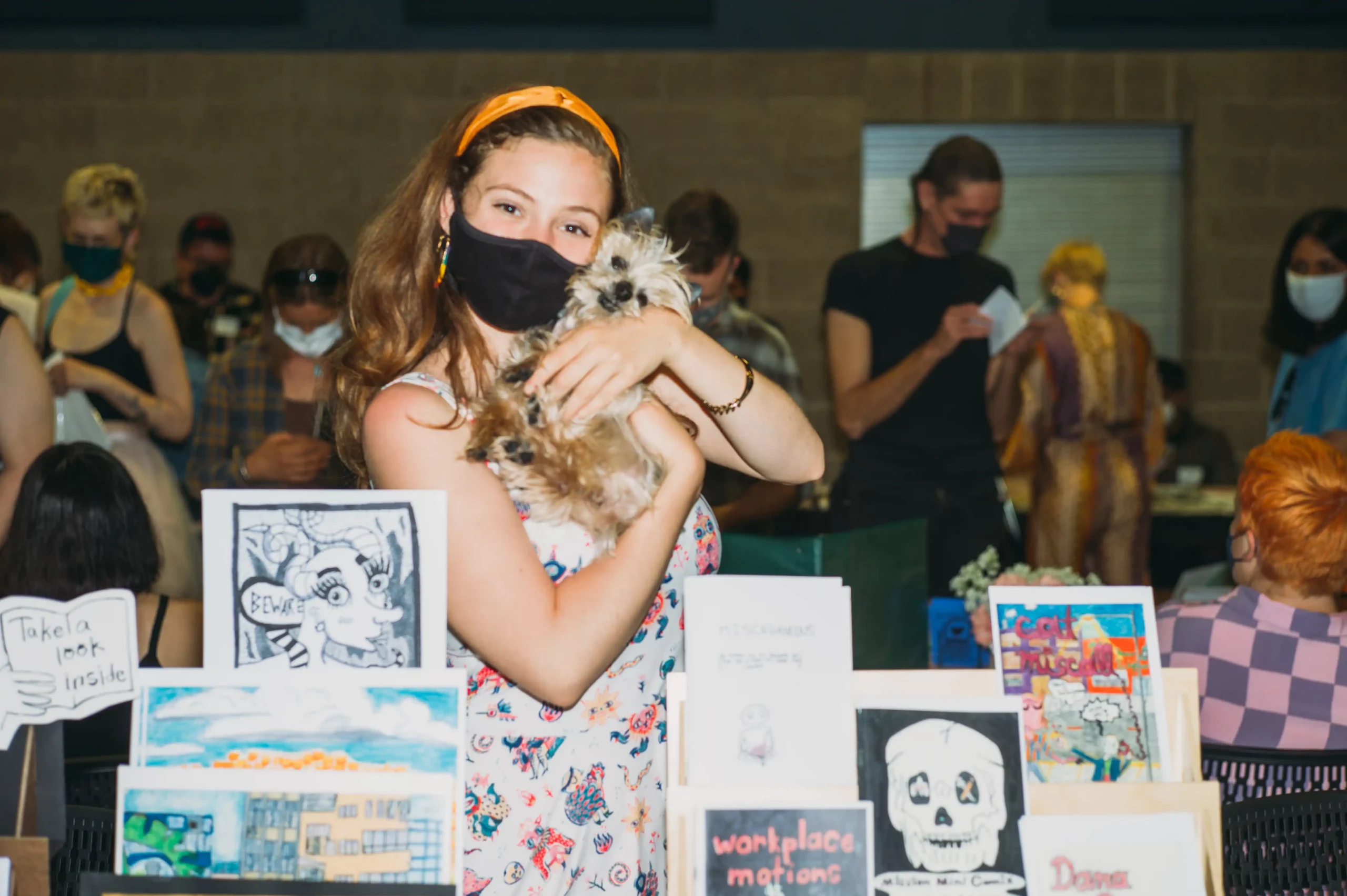 Ivy Rose and dog Eli. Zines: You Got Hurt, Cat Miscall (Photo: Tyson Call)