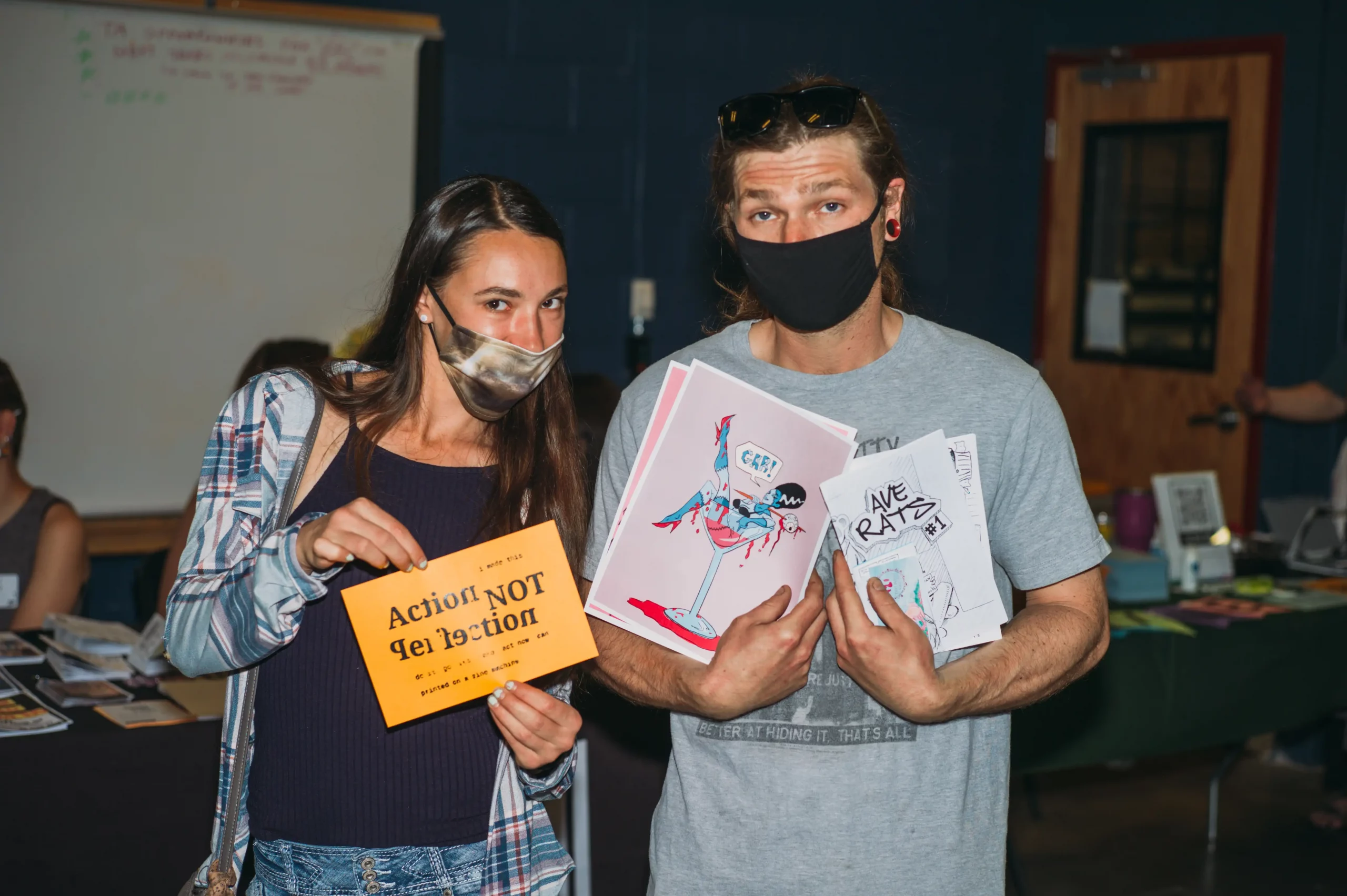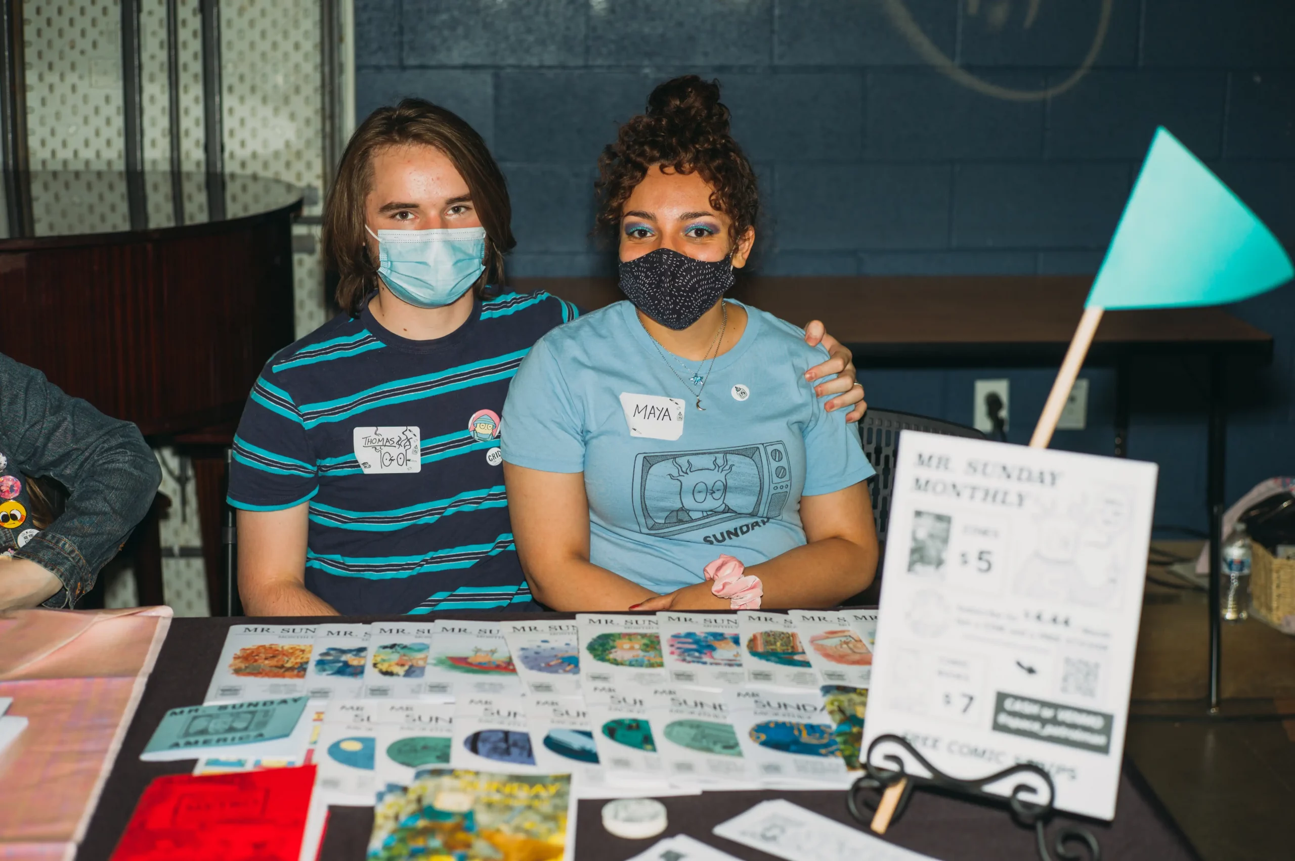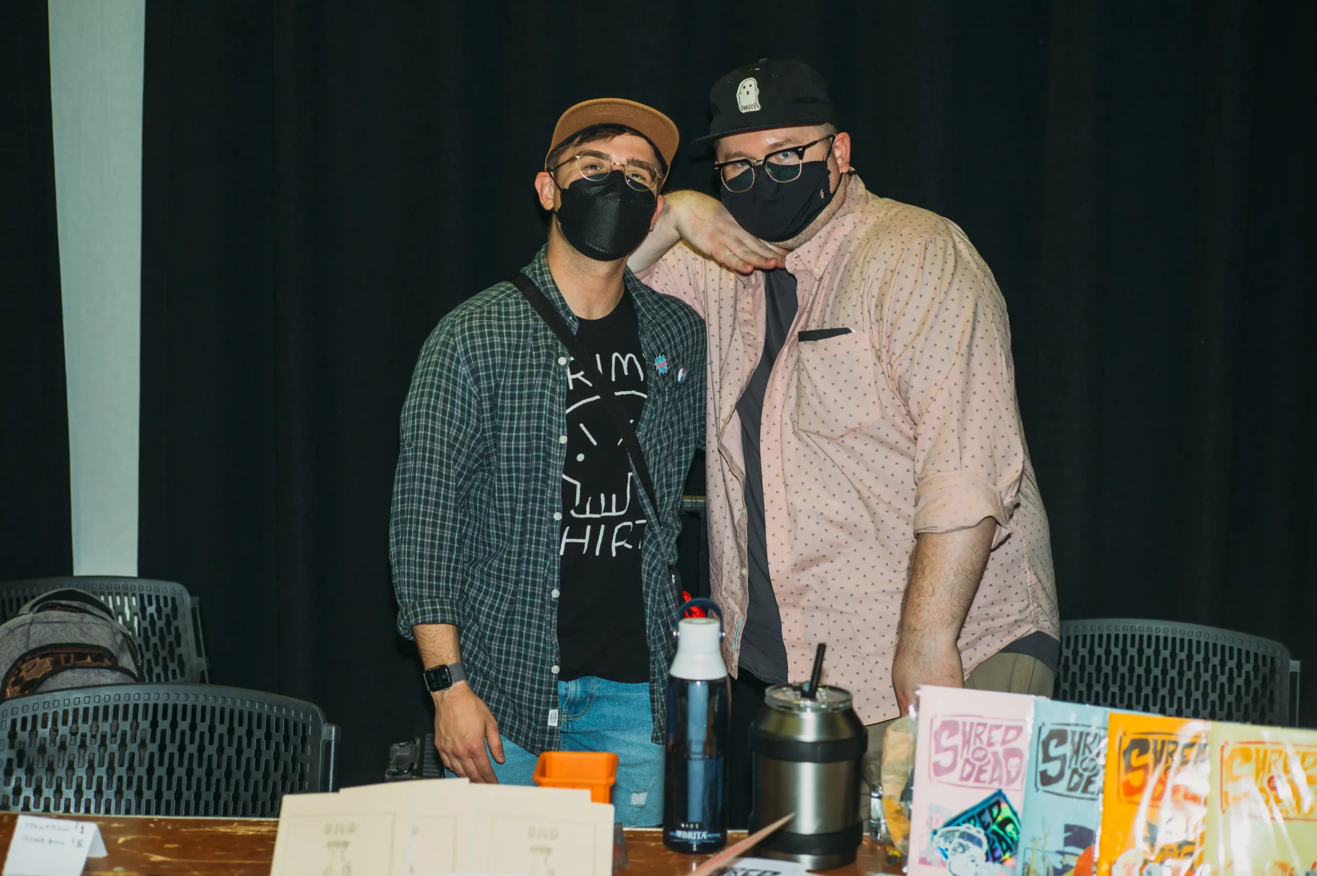 (L-R) Kade Whittle with his zine Sad People, and D. Bradford Gambles @heartlesscorp and his zine Shred or Dead. (Photo: Tyson Call)
