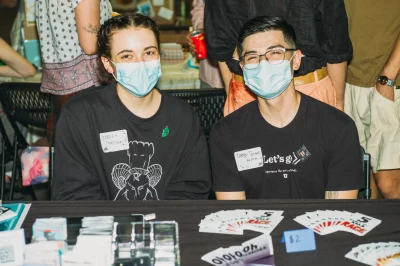 (L–R) Attendees Kiana Pennock and Zakk Reynolds show off their findings. (Photo: Tyson Call)