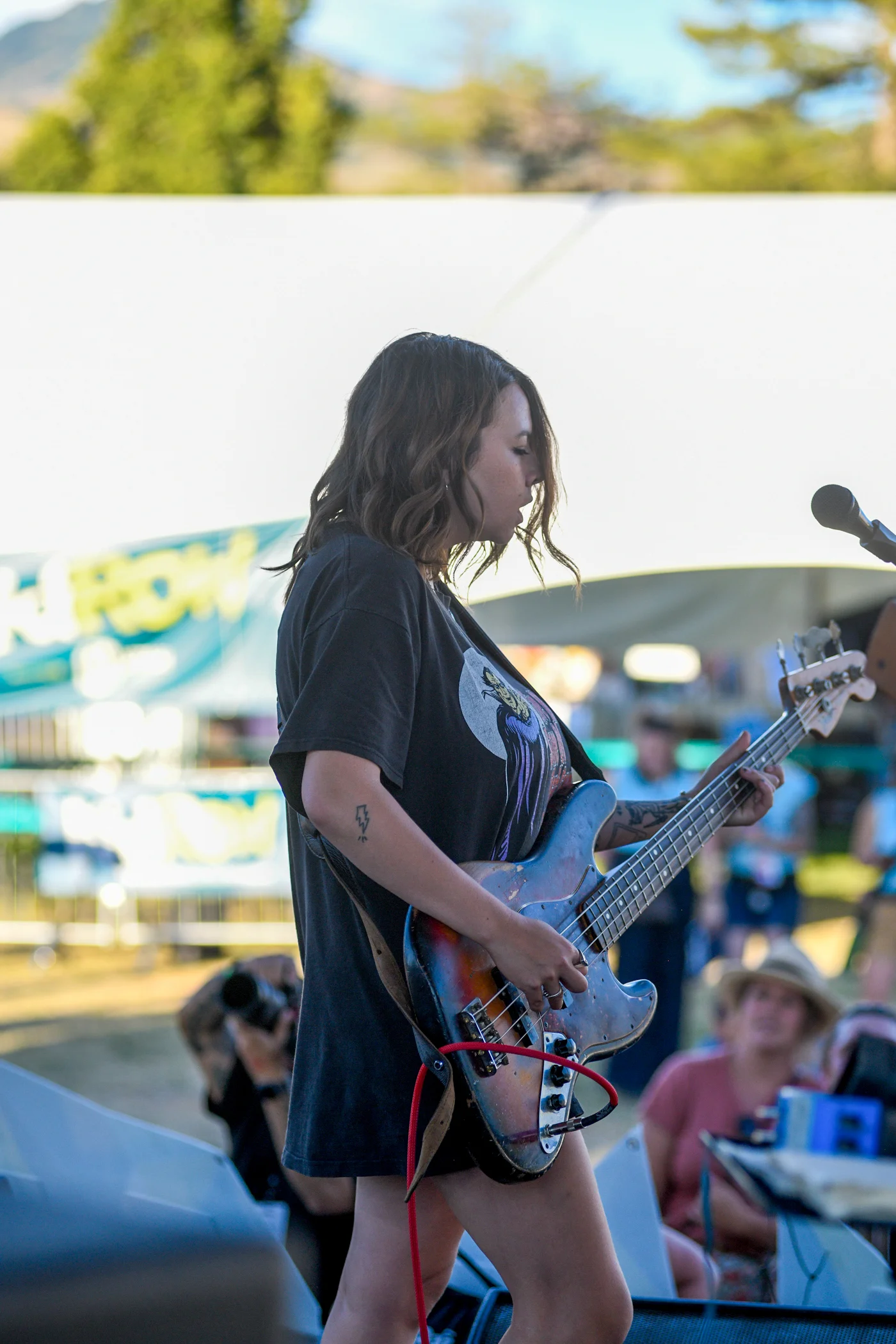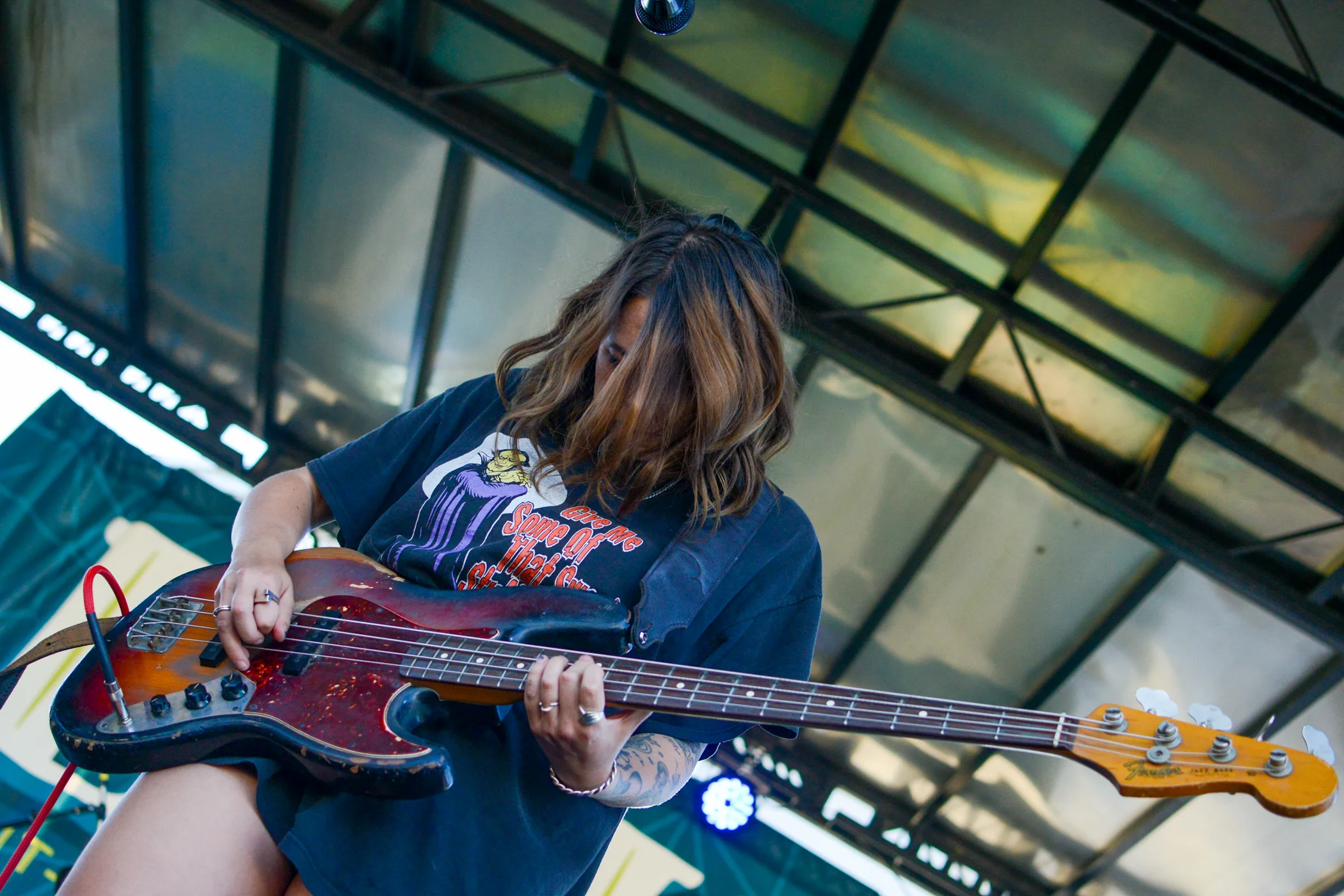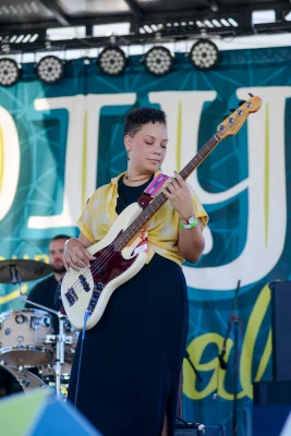 Jenny Lee Lindberg of Warpaint playing the bass. Photo: Em Behringer