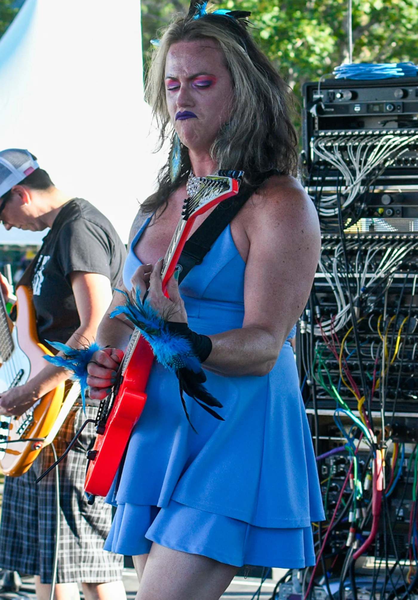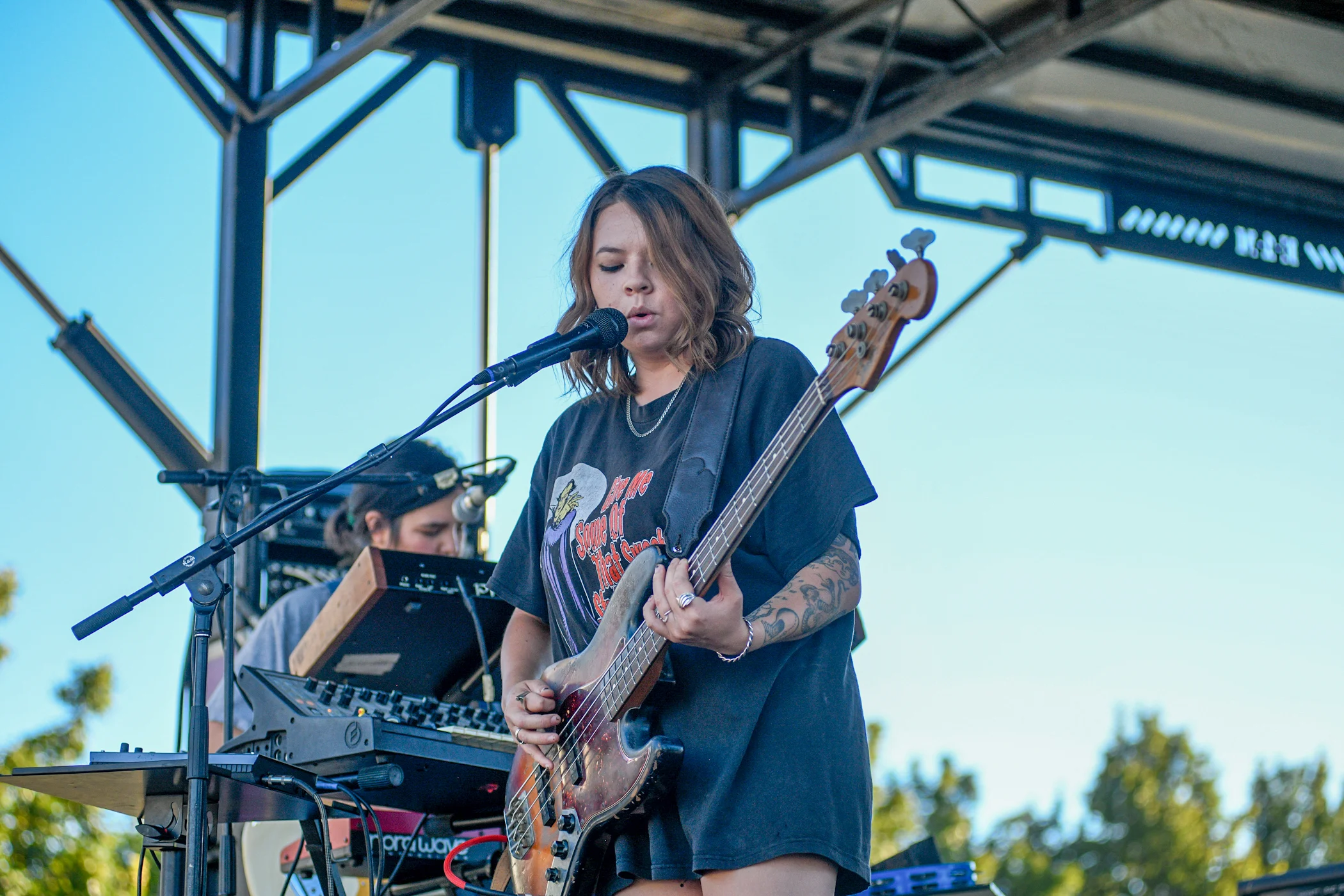 Derv playing bass and singing. Photo: Em Behringer