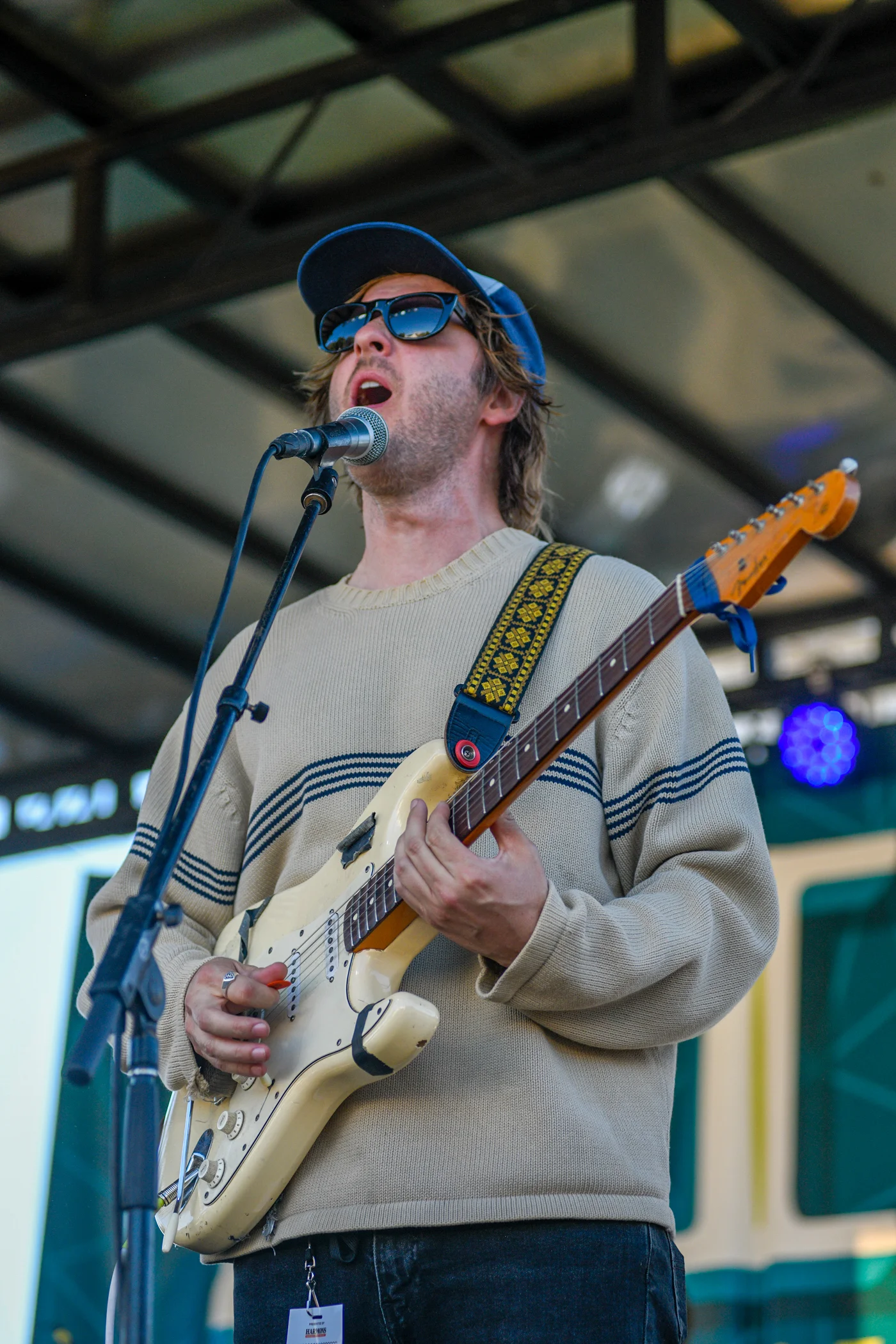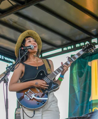 Cam Pablo singing and playing guitar. Photo by: Em Behringer